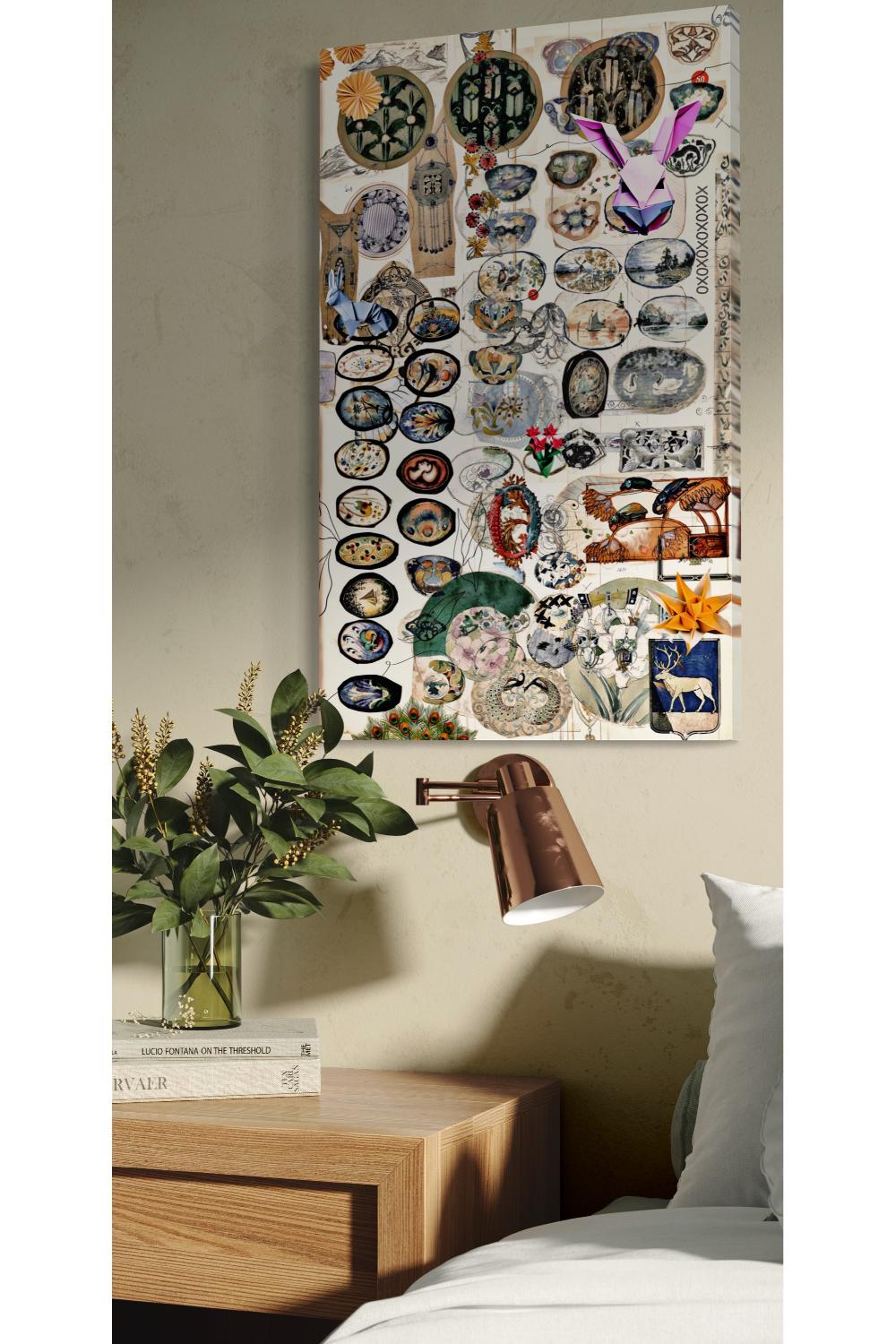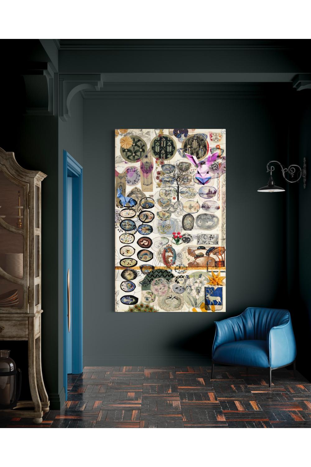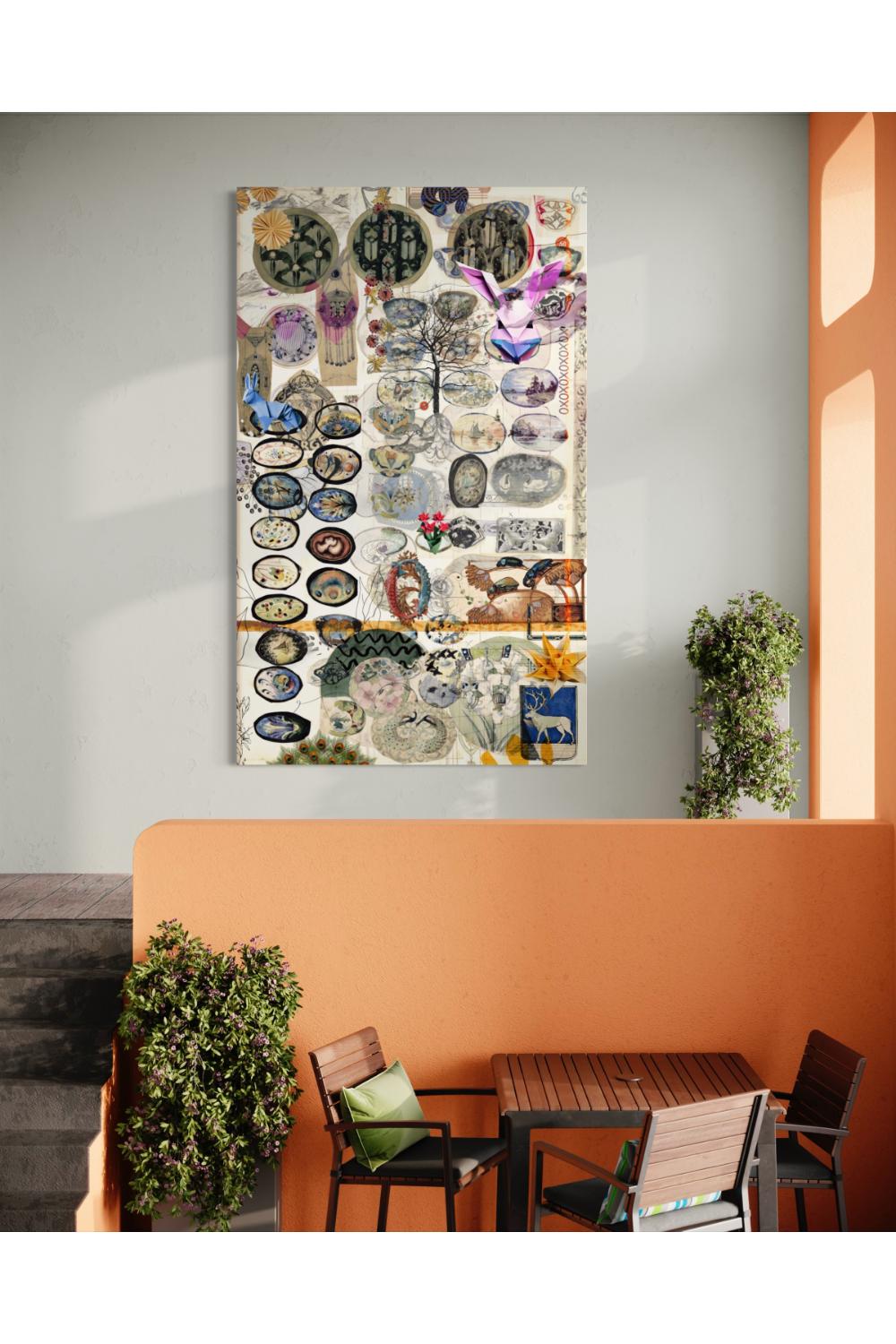Bu kolaj, duvarınıza asıldığında size doğanın gücünü ve canlılığını hatırlatır. Farklı coğrafyaların, renklerin ve dokuların bir araya geldiği bu eser, doğanın zenginliğini ve çeşitliliğini vurgular. Duvarınıza asıldığında, kendinizi doğadan uzaklaşmış hissettiğiniz anlarda bir anı olarak kullanabilirsiniz.