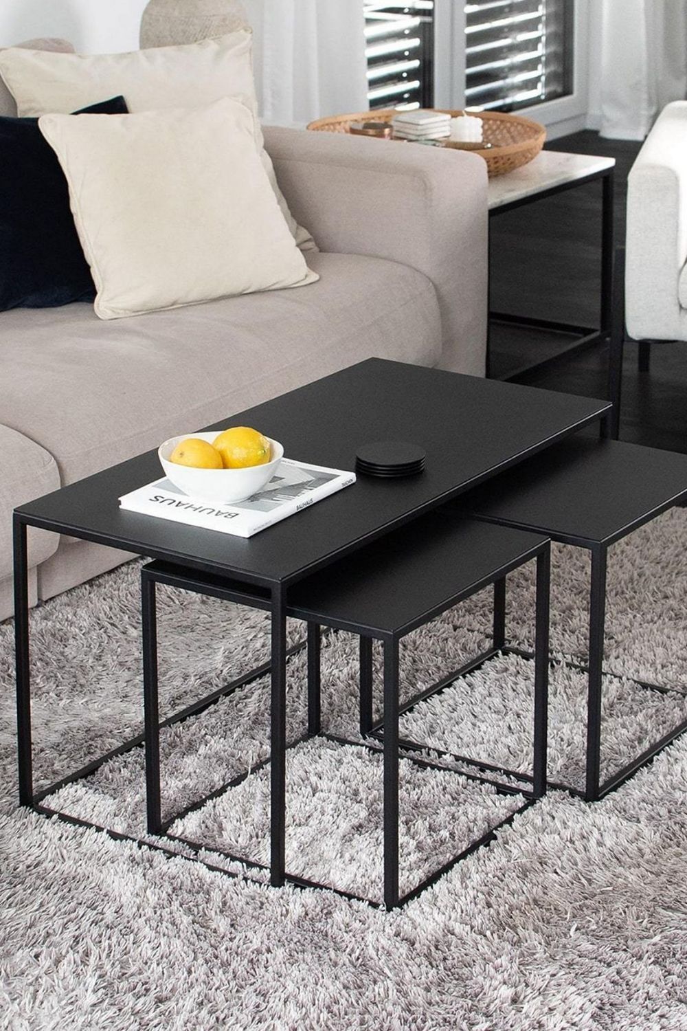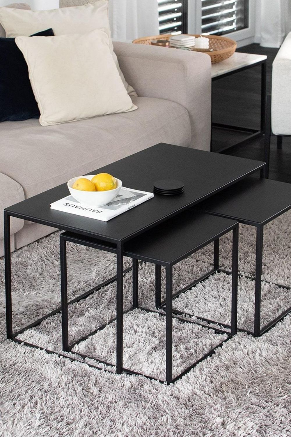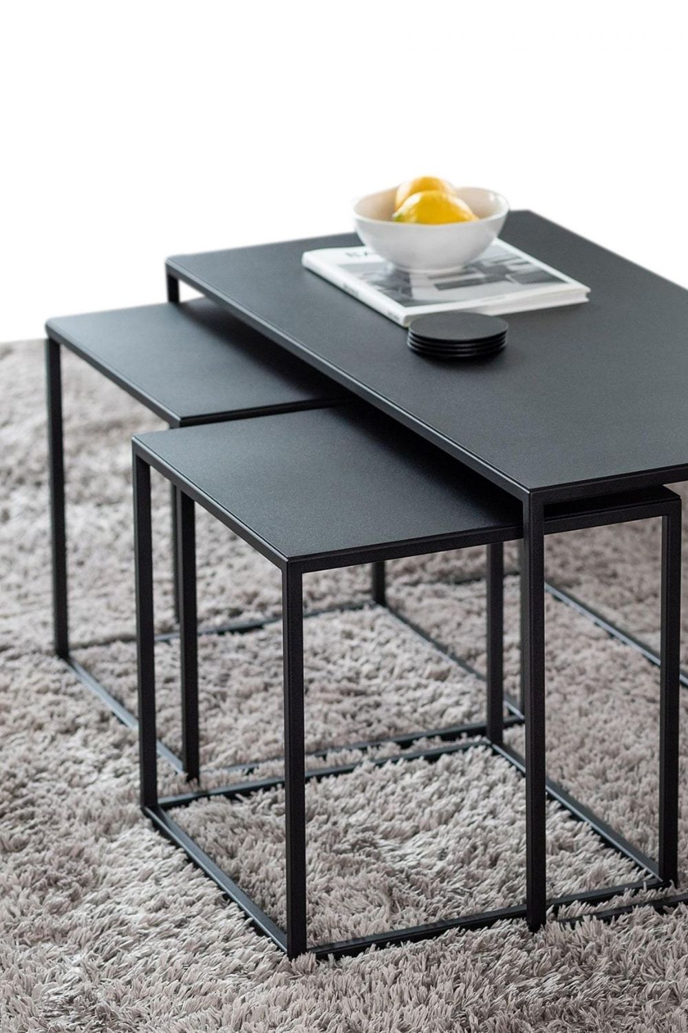 Doğal Masif Ahşap Damla Sehpa Seti - 3'lü Zigon Set Modern Ve Minimalist Sehpa Takımı (Yan Sehpa, Orta Sehpa, Dekoratif Sehpa) (Ceviz)