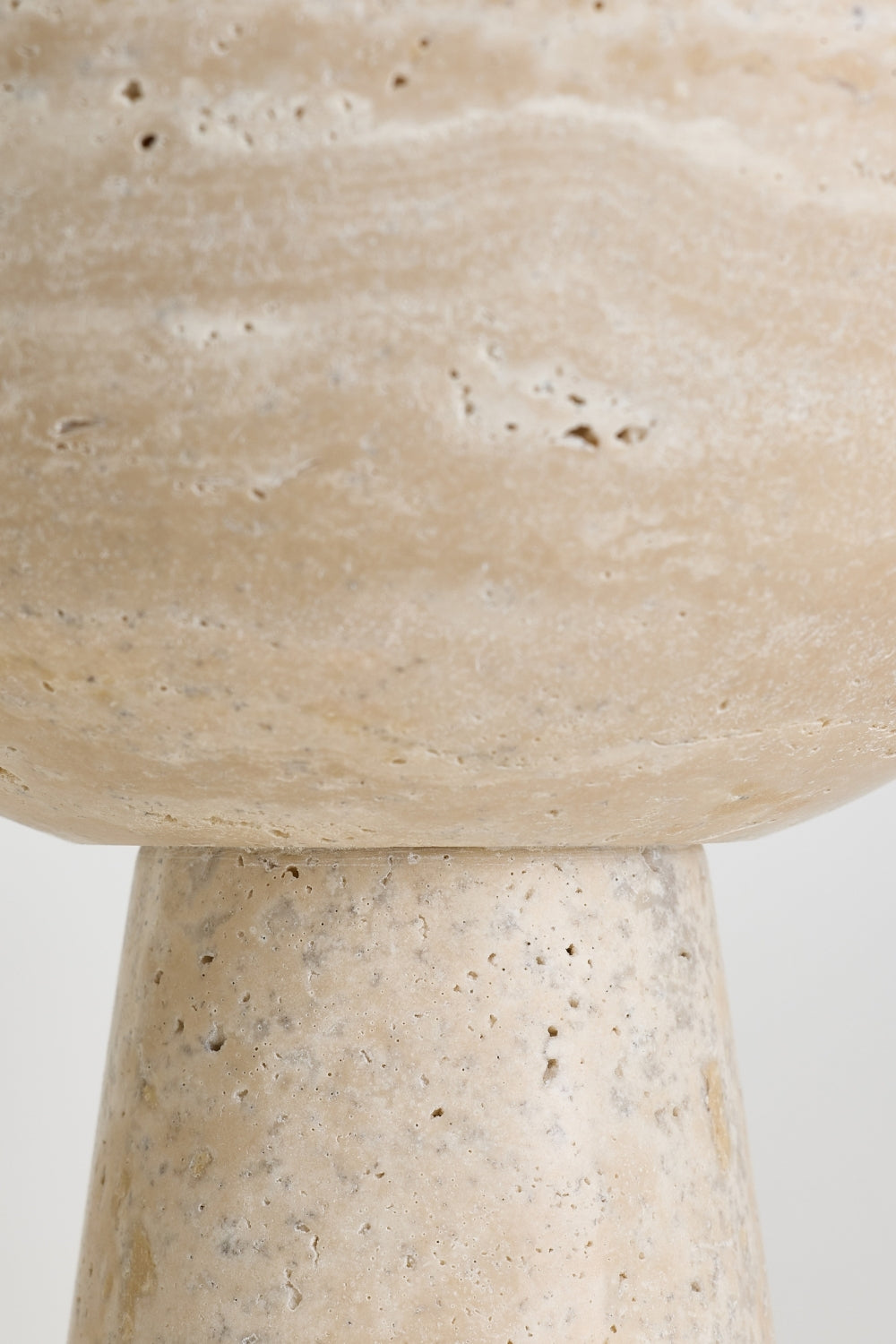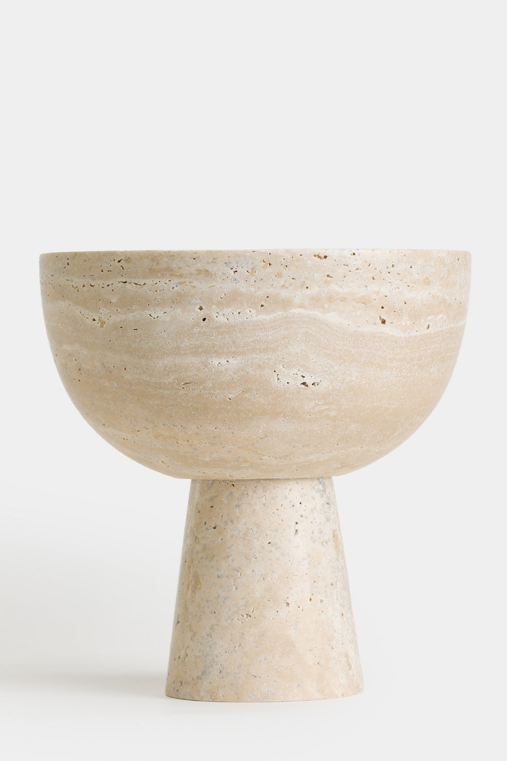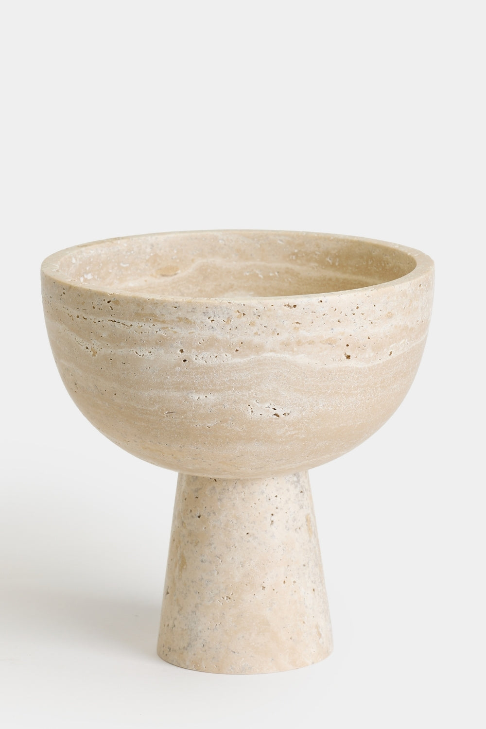 Ürün Özellikleri:Malzeme: Doğal traverten malzemeBoyutlar: Kase Çap: 20 cm, Yükseklik: 20 cm, Ayak Çap: 9 cm, Ayak Yükseklik: 10 cmDoğal malzeme: Özel işlenmiş, her biri benzersiz el işçiliği