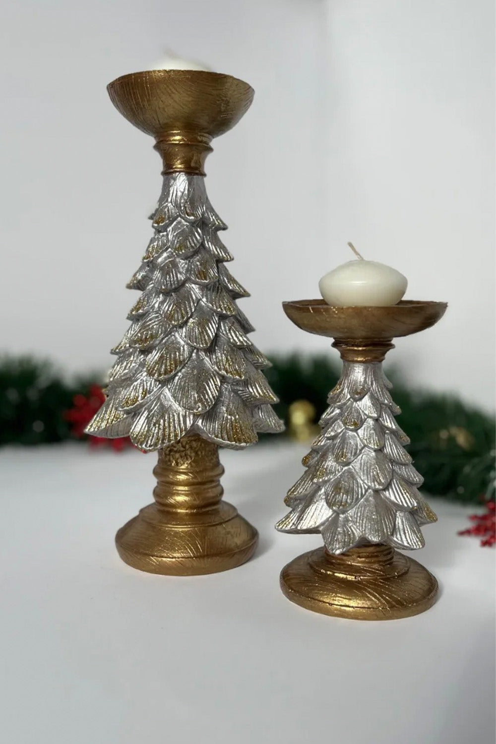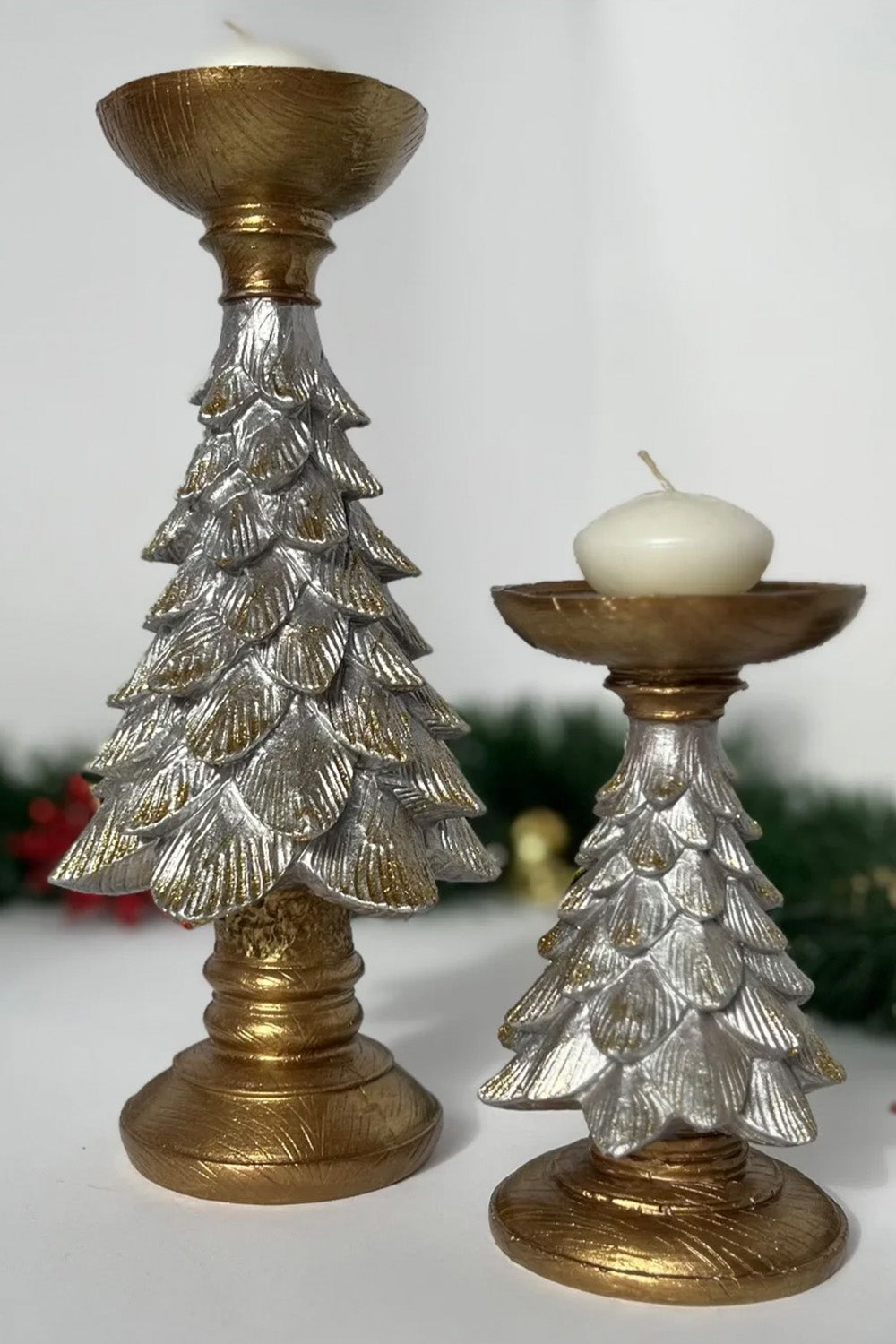 Yılbaşı Ağacı Altın Gümüş Ikili Şamdan
