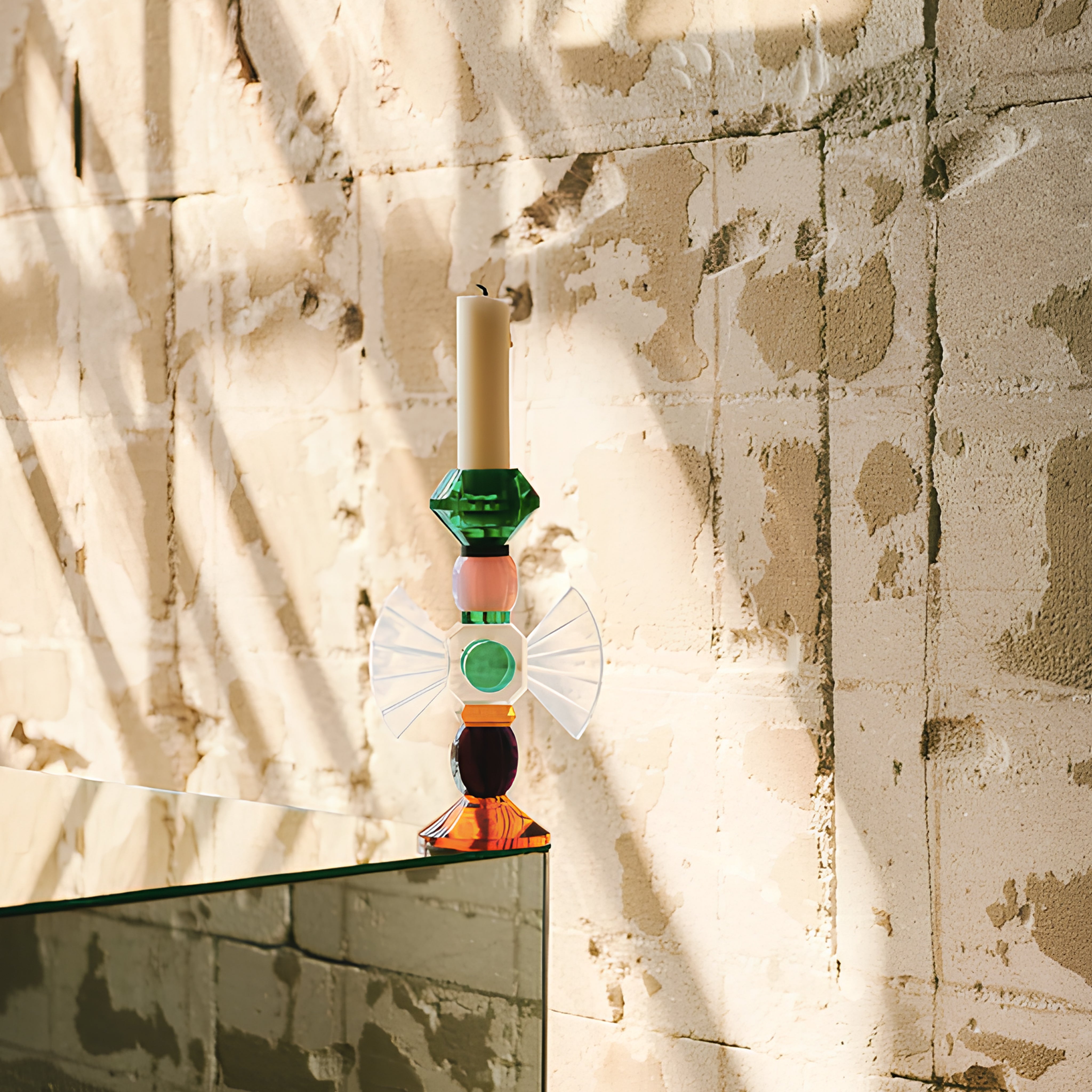 Bu çarpıcı mumluk, tasarımında pek çok benzersiz öğe barındırıyor: amber renginde bir taban üzerinde duran opal kelebek kanatları, farklı şekillerde sıralanmış ve zümrüt yeşili bir mumlukla tamamlanmış. Bu dikkat çekici renk kombinasyonu, bu kristal mumluğu bir sanat eseri haline getiriyor ve nerede sergilenirse sergilensin göz alıcı bir etki yaratıyor. Carmina Mumluk, büyüleyici ve hoş renk kombinasyonuyla sizi cezbetmeye davet ediyor ve tek başına güçlü bir şekilde durabileceği gibi, koleksiyonumuzdaki başka bir mumlukla da kombinlenebilir.