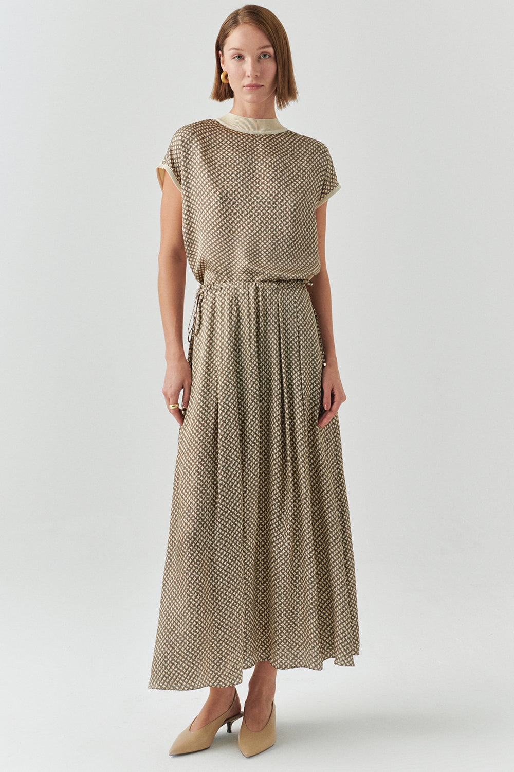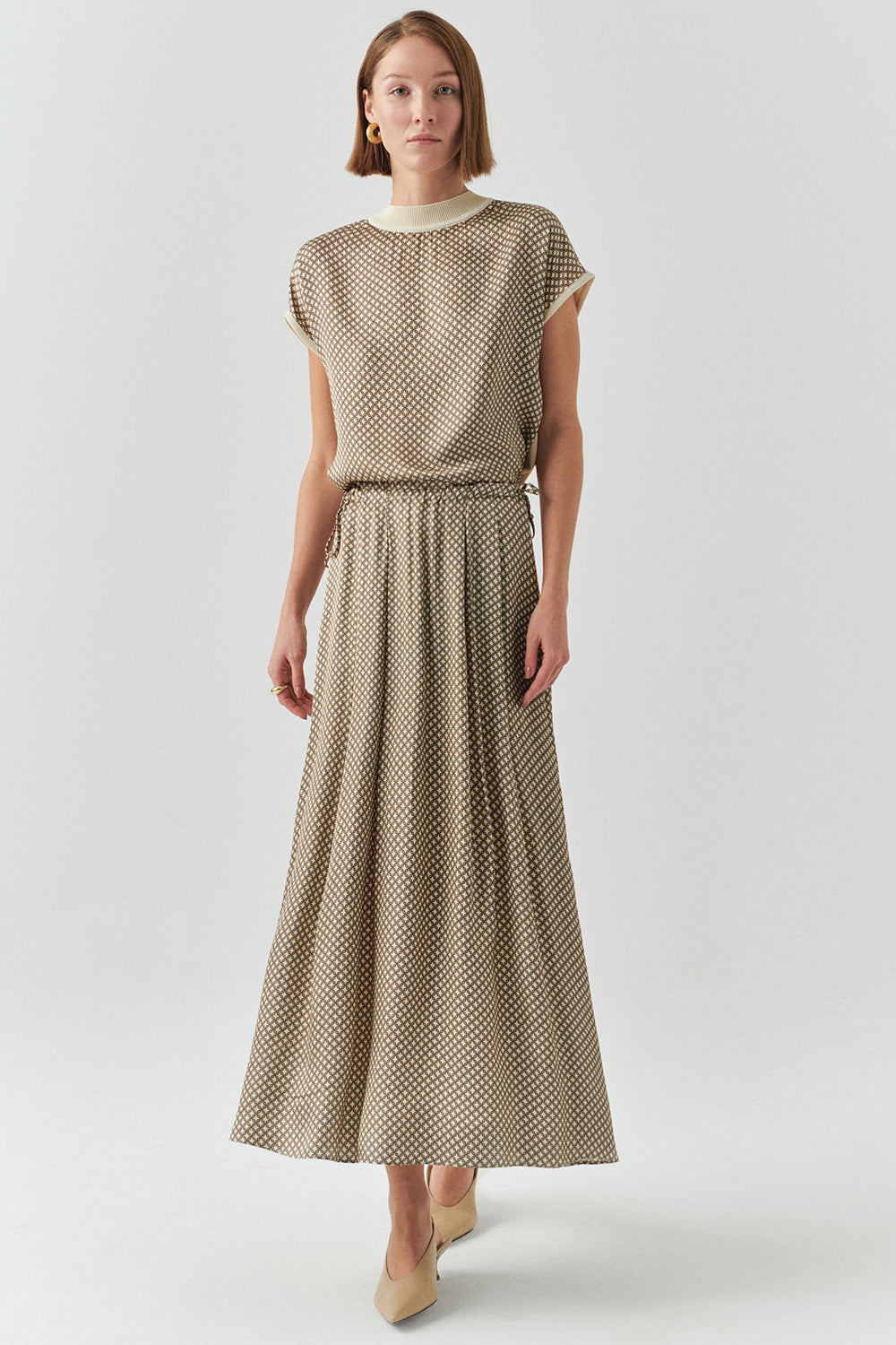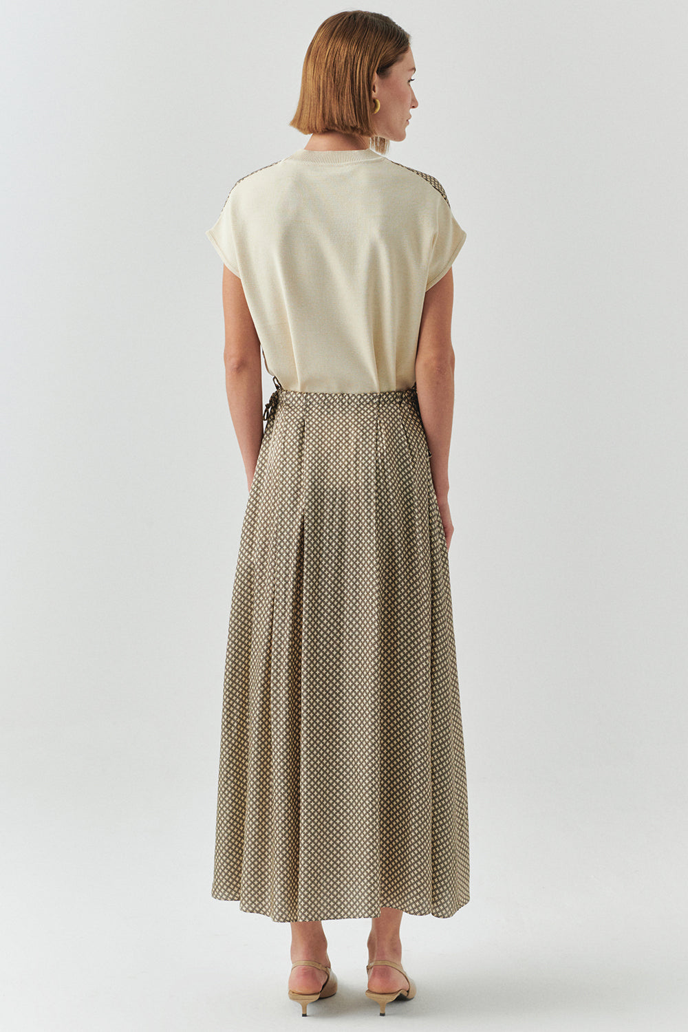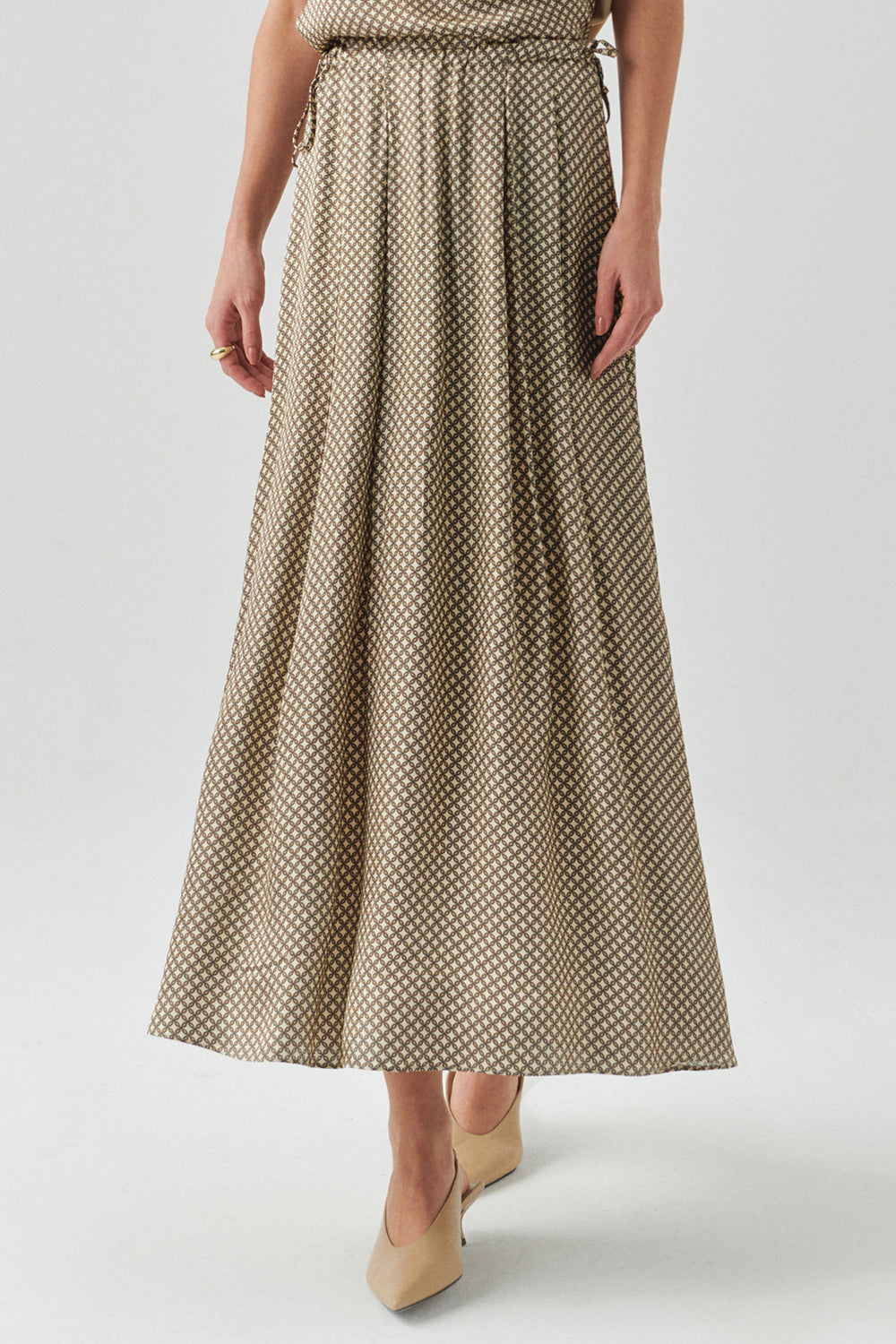 Bağcıklı Beli Lastikli Desenli Regular Midi Çok Renkli Etek