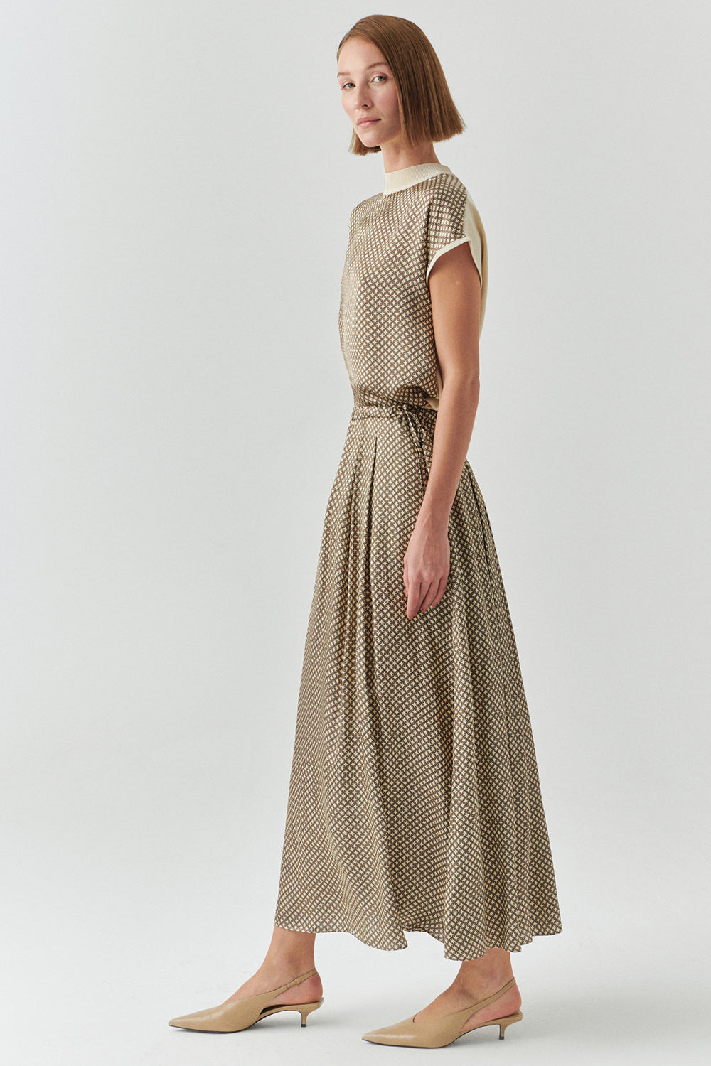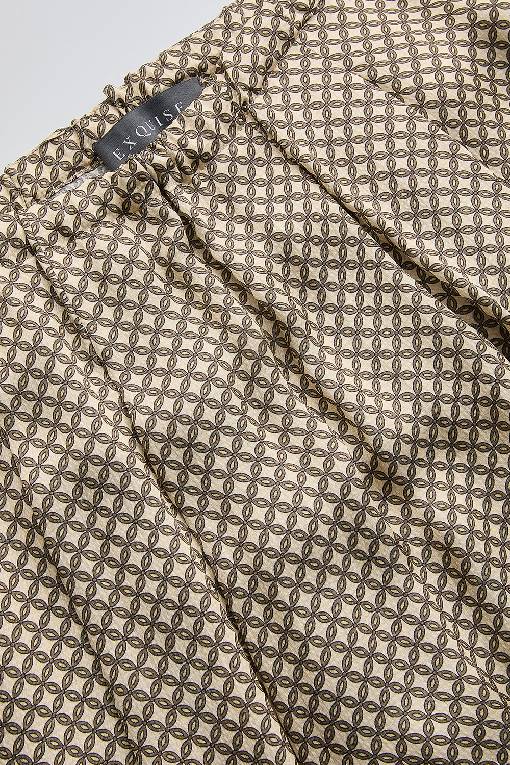 Zarif desenleri ve beli lastikli tasarımıyla öne çıkan bu midi etek, bağcıklı detayı sayesinde vücuda uyum sağlayarak rahat bir kullanım sunar. Regular fit kesimi ile günlük kombinlerden özel gün stillerine kadar şık ve kullanışlı bir seçenektir.