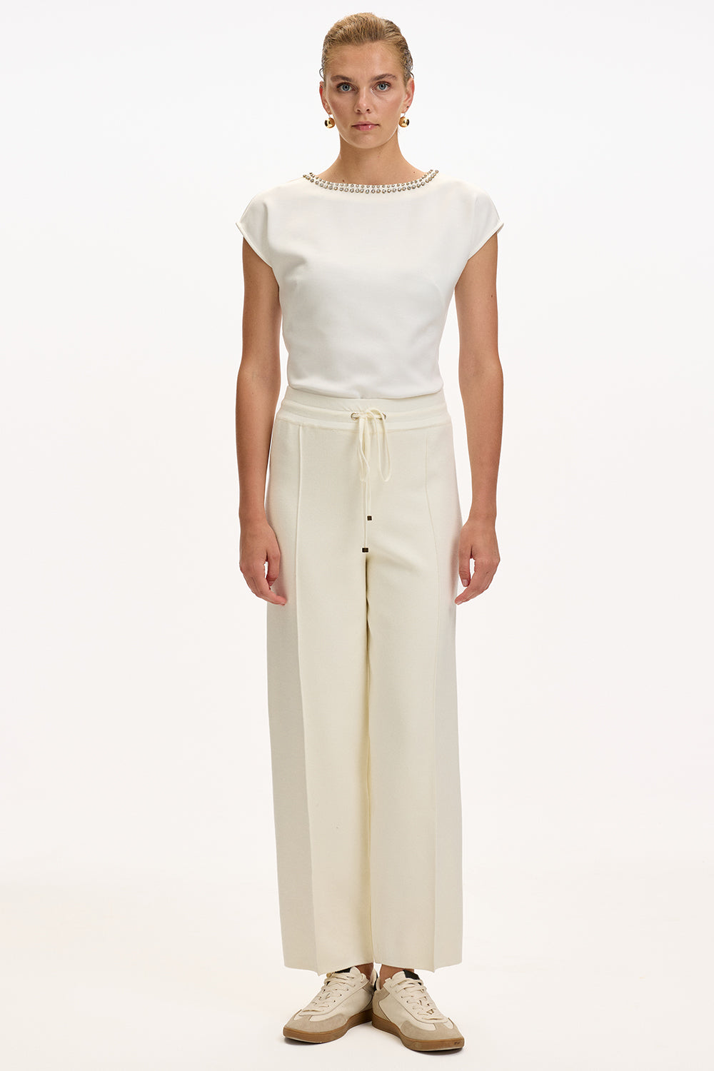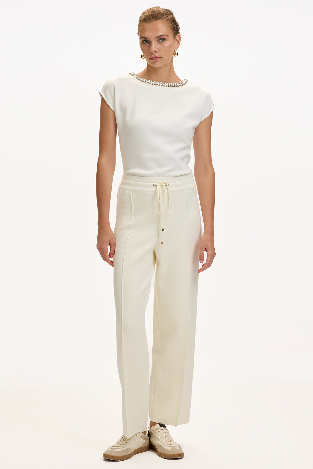 Yumuşak dokulu triko kumaşıyla bedeninize nazikçe eşlik eden bu regular kesim pantolon, sade şıklığıyla öne çıkar. İnce zevklere hitap eden bağcık detayı, modern tasarıma sportif bir zarafet katarken; esnek bel yapısı gün boyu özgürce hareket etmenizi sağlar. Günlük stilinizde konforu, incelikle işlenmiş bir şıklıkla birleştirmek isteyenler için özel olarak tasarlandı.