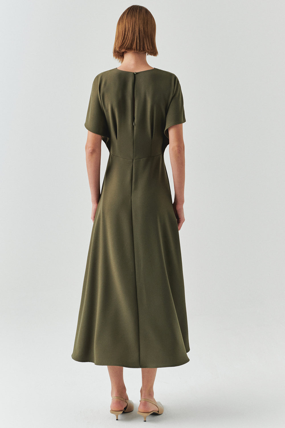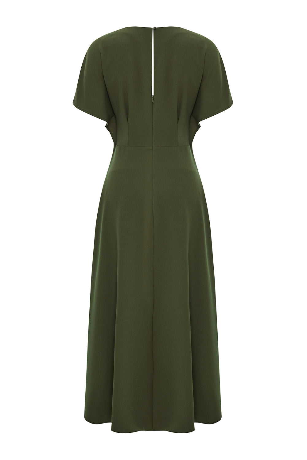 Bisiklet Yaka Kısa Kollu Regular Midi Haki Elbise