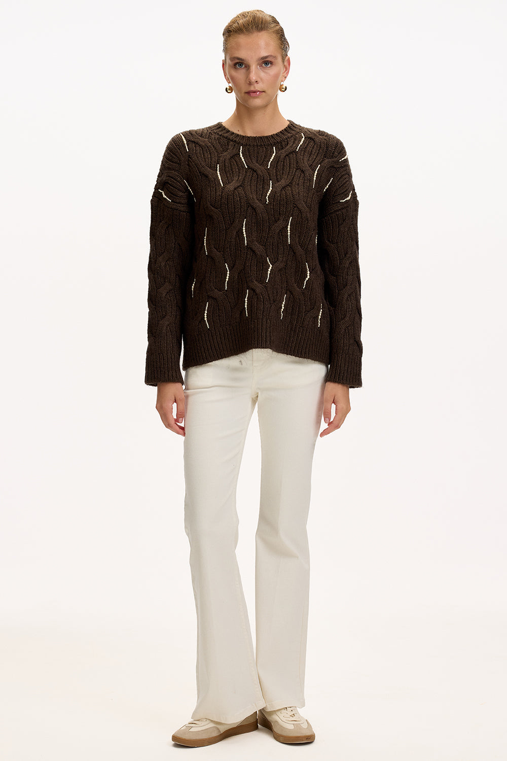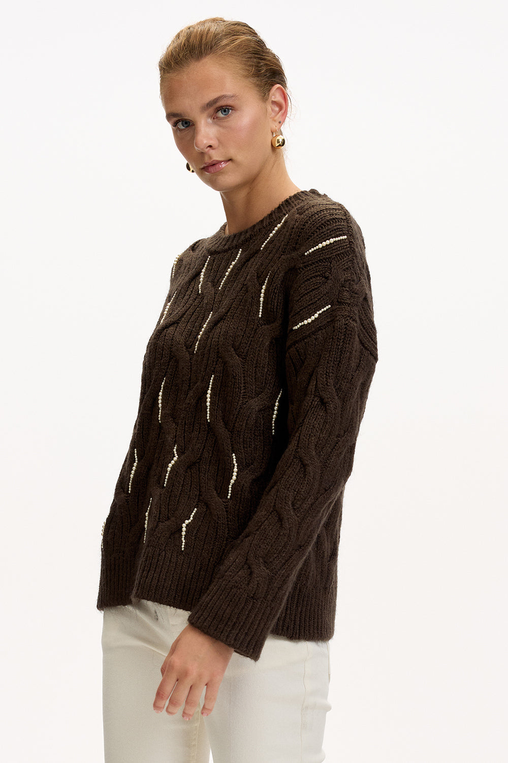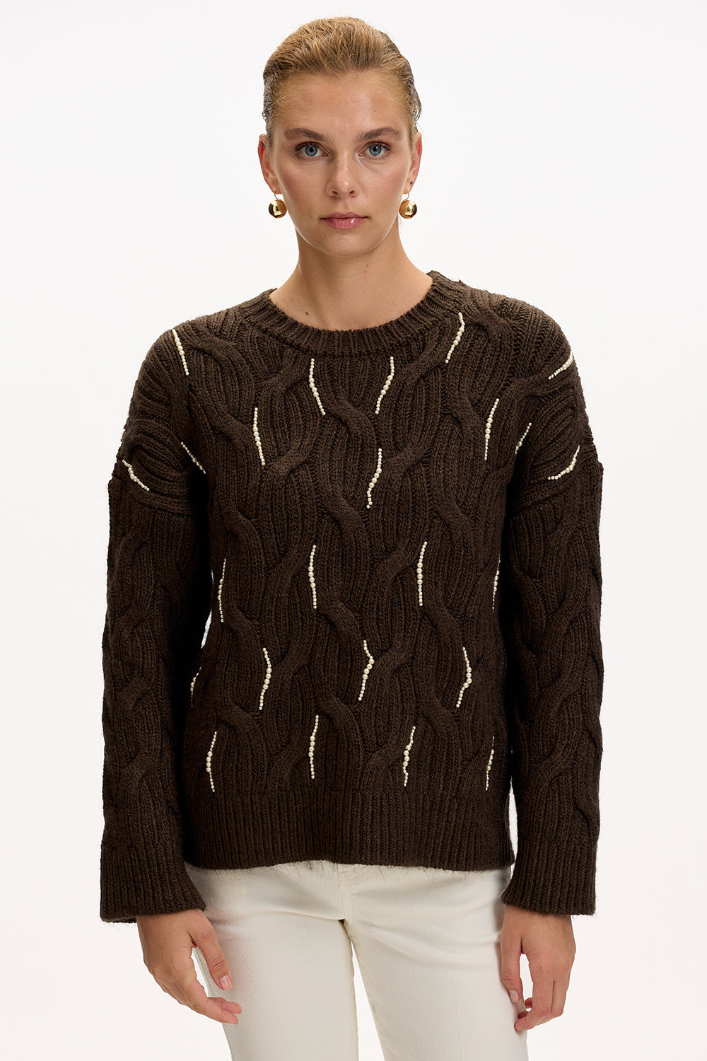 Yumuşak triko dokusu ve özenle işlenmiş boncuklarıyla zarif bir parıltı sunan bu bisiklet yaka bluz, rahat kesimiyle gün boyu konfor sağlar; kot pantolonla güne enerjik bir başlangıç yapabilir, akşam ise şık bir etek ve topuklularla davetlere hazır hale gelir, tıpkı dolabınızda her zaman güvenle uzandığınız o özel parça gibi.