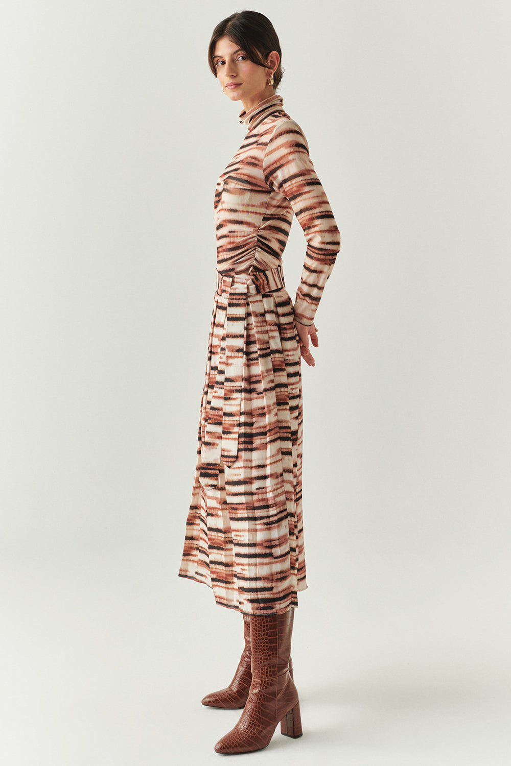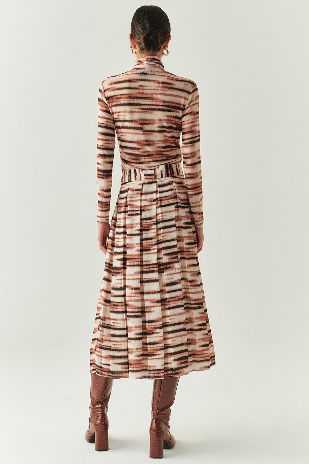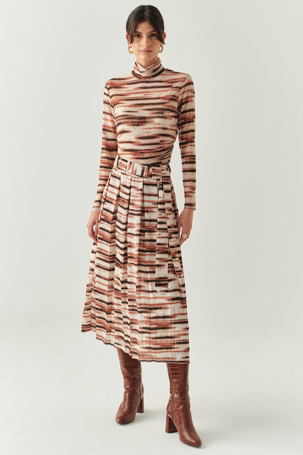 Kuşaklı Astarlı Regular Midi Pileli Desenli Etek