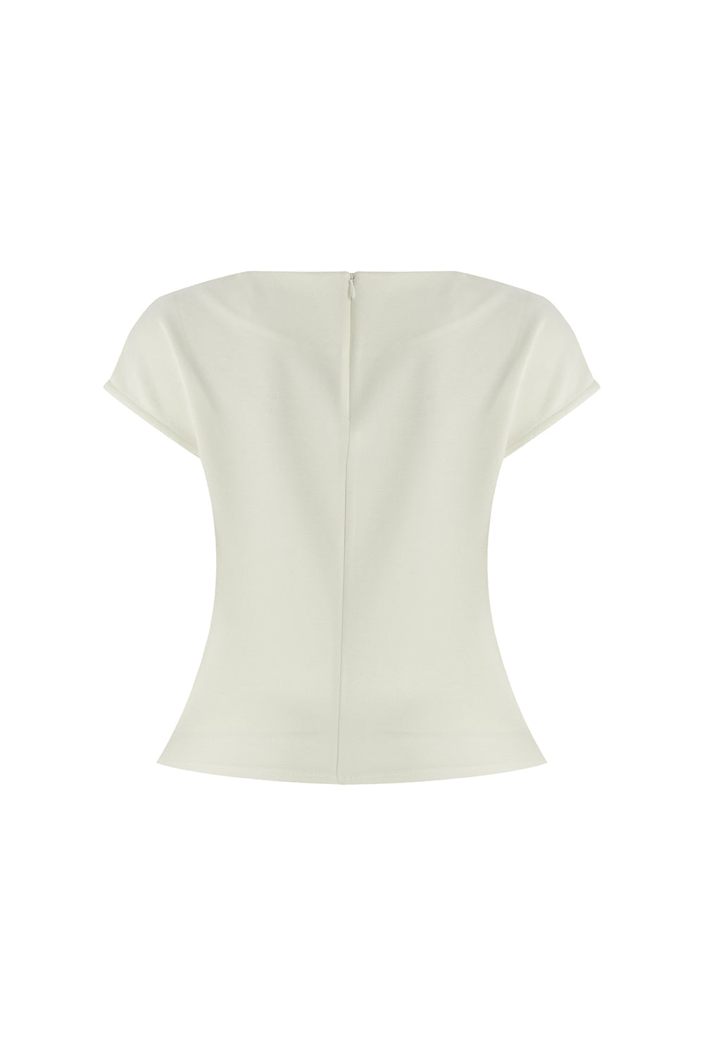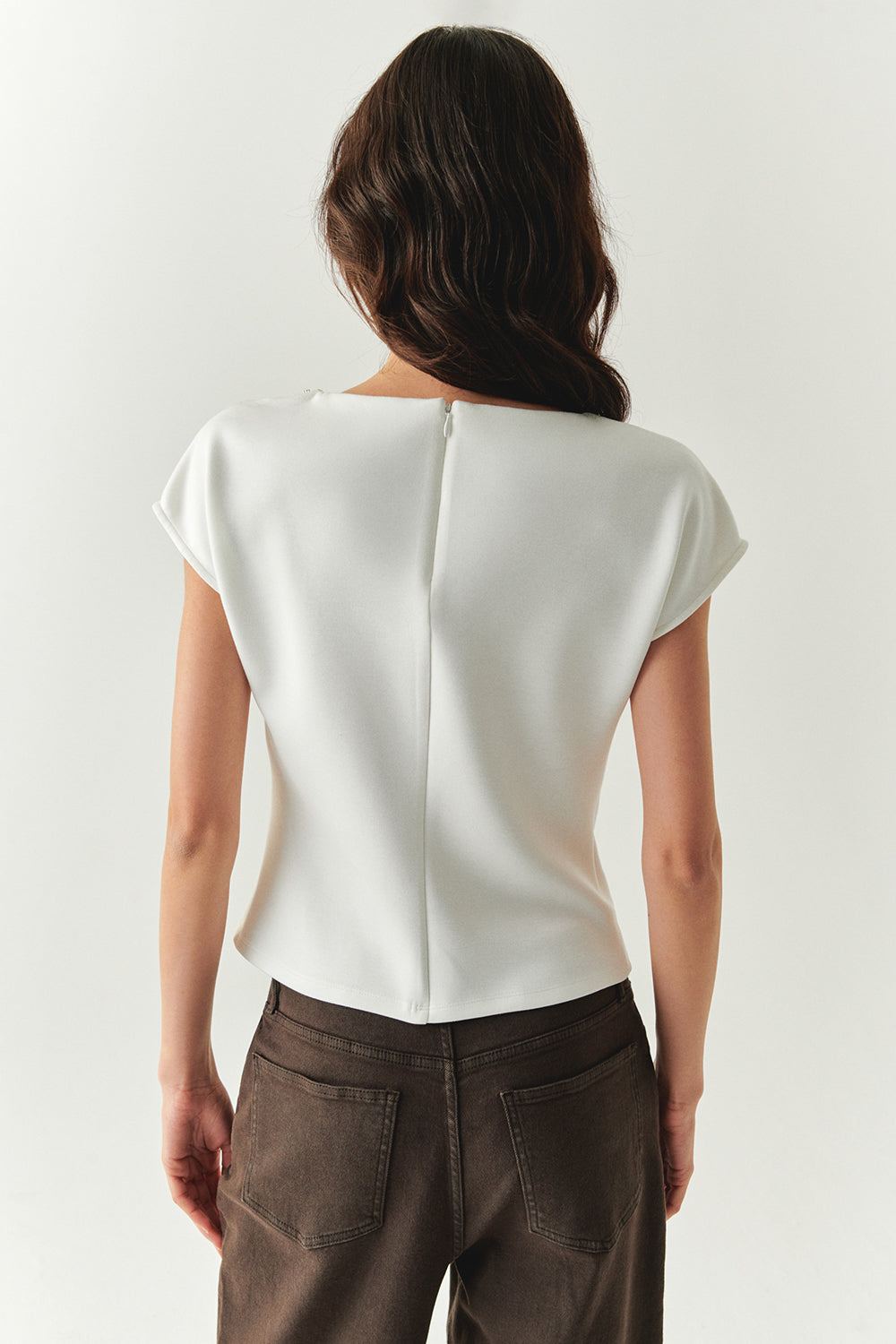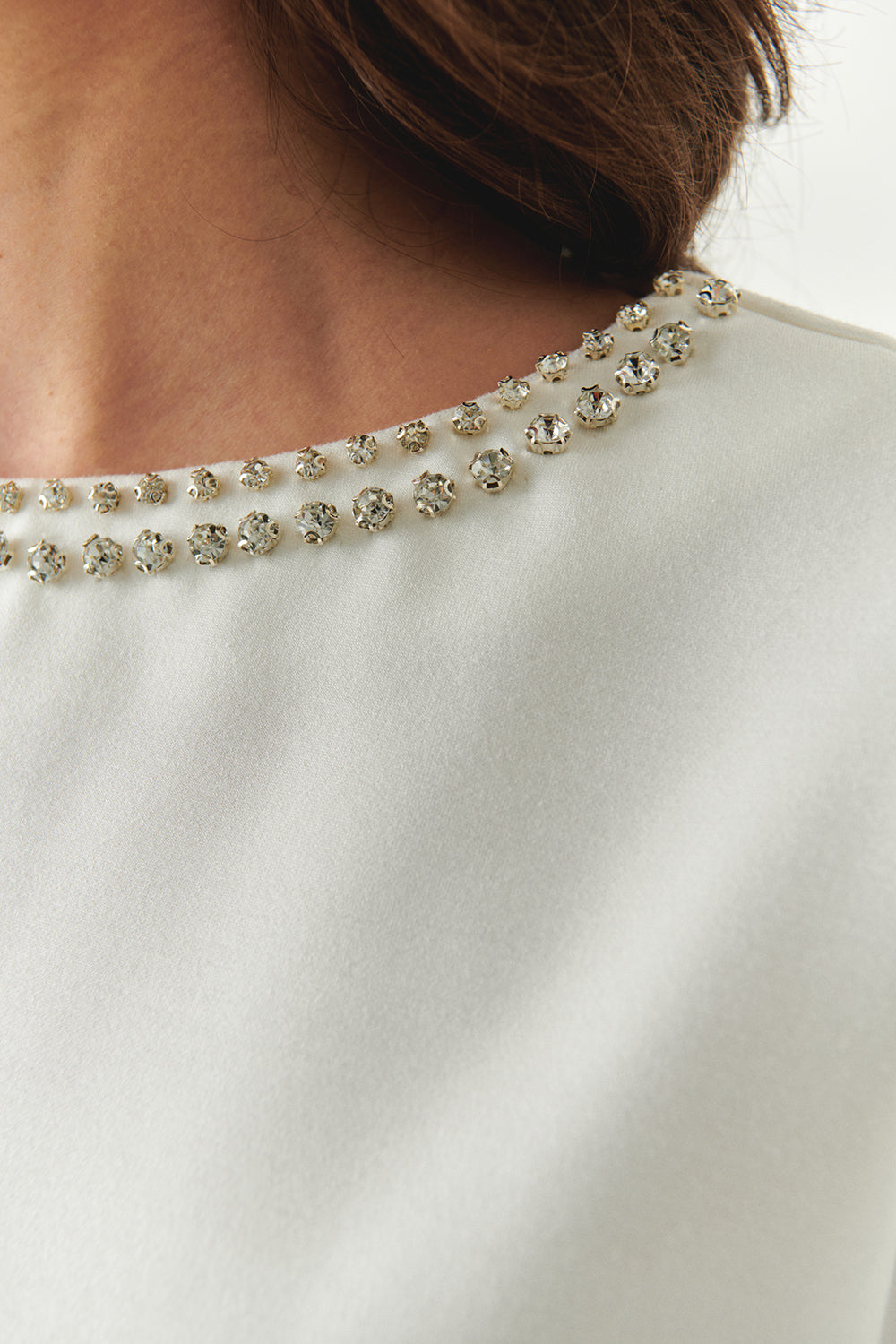 Taş Detaylı Kayık Yaka Kolsuz Regular Kemik Örme Bluz