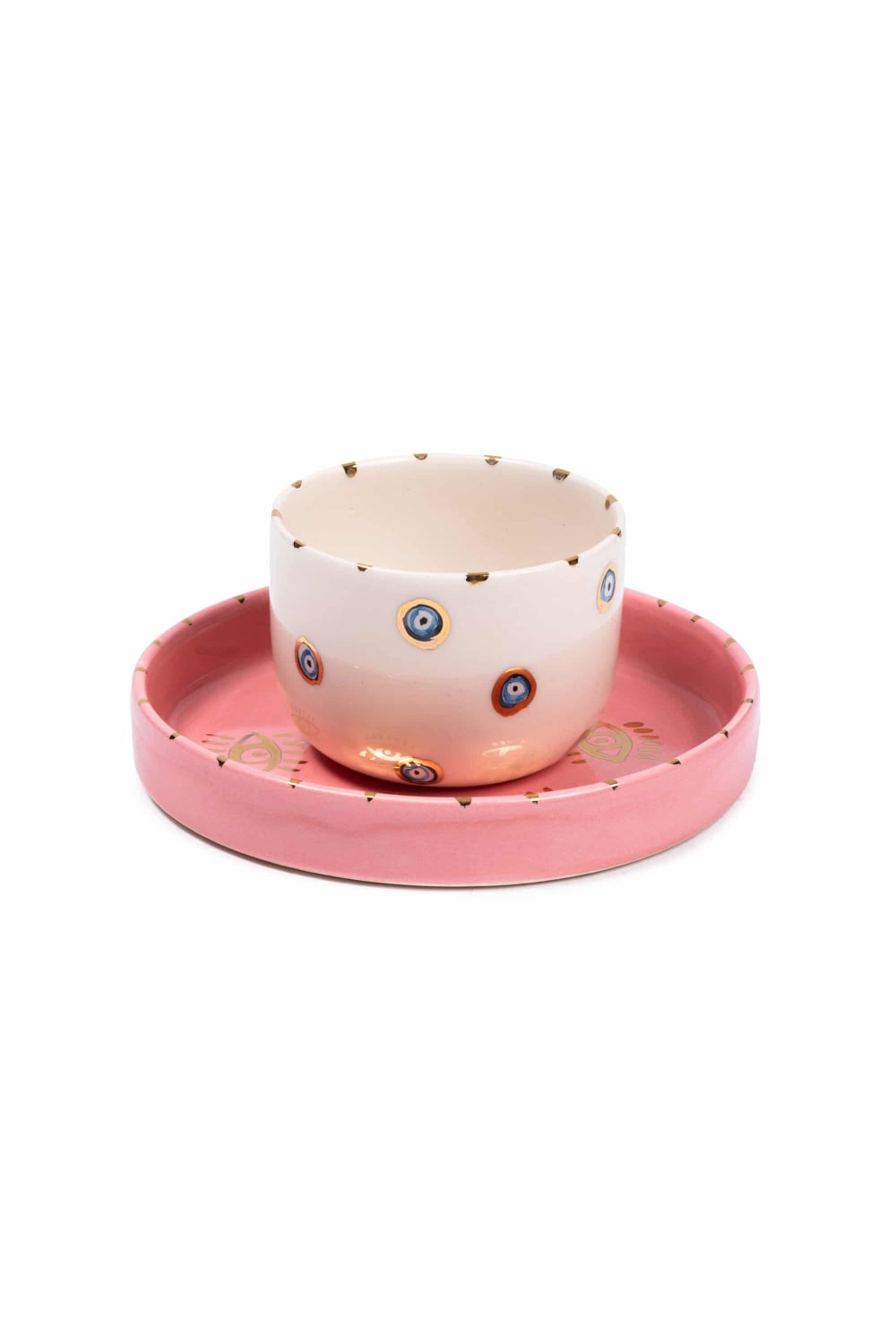 Inner Eye Collection Gözlü Pembe Türk Kahvesi Fincanı Seti