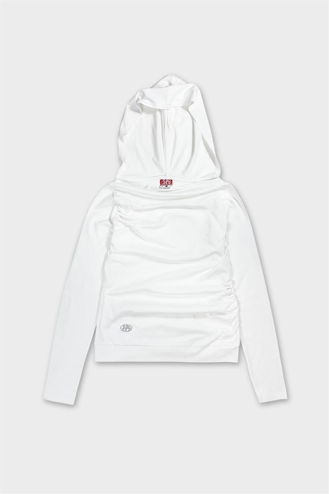Beyaz Kapüşonlu Uzun Kollu Bluz