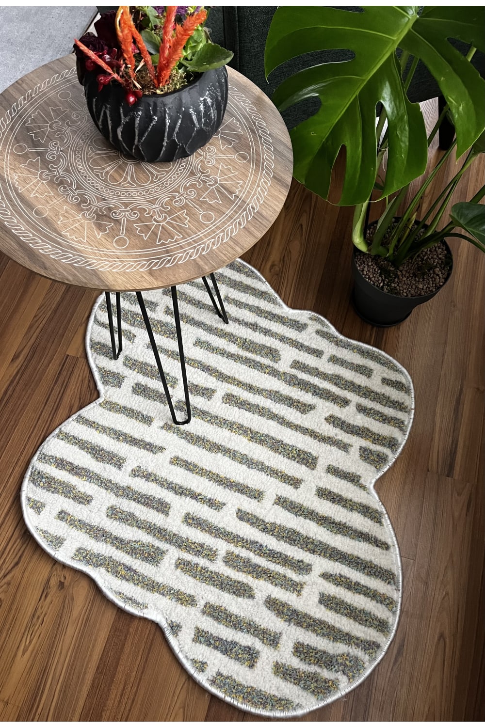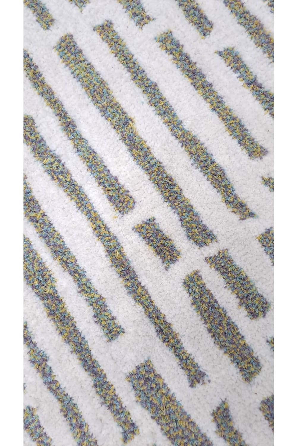 Akrilik ve pamuk iplikten üretilen tasarımımız tufting tekniği ile dokunarak üretilmiştir.