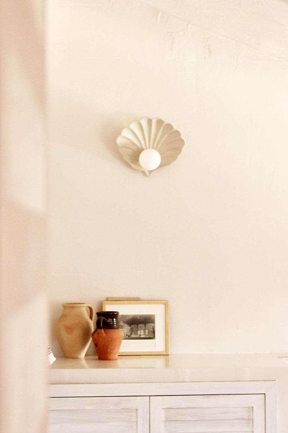Mekânınıza deniz esintisi ve zarif bir dokunuş katacak eşsiz bir aydınlatma parçası: Deniz Kabuğu Formlu Seramik Aplik.