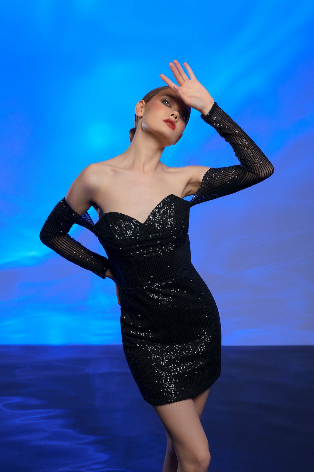Siyah payet kumaştan üretilmiştir.