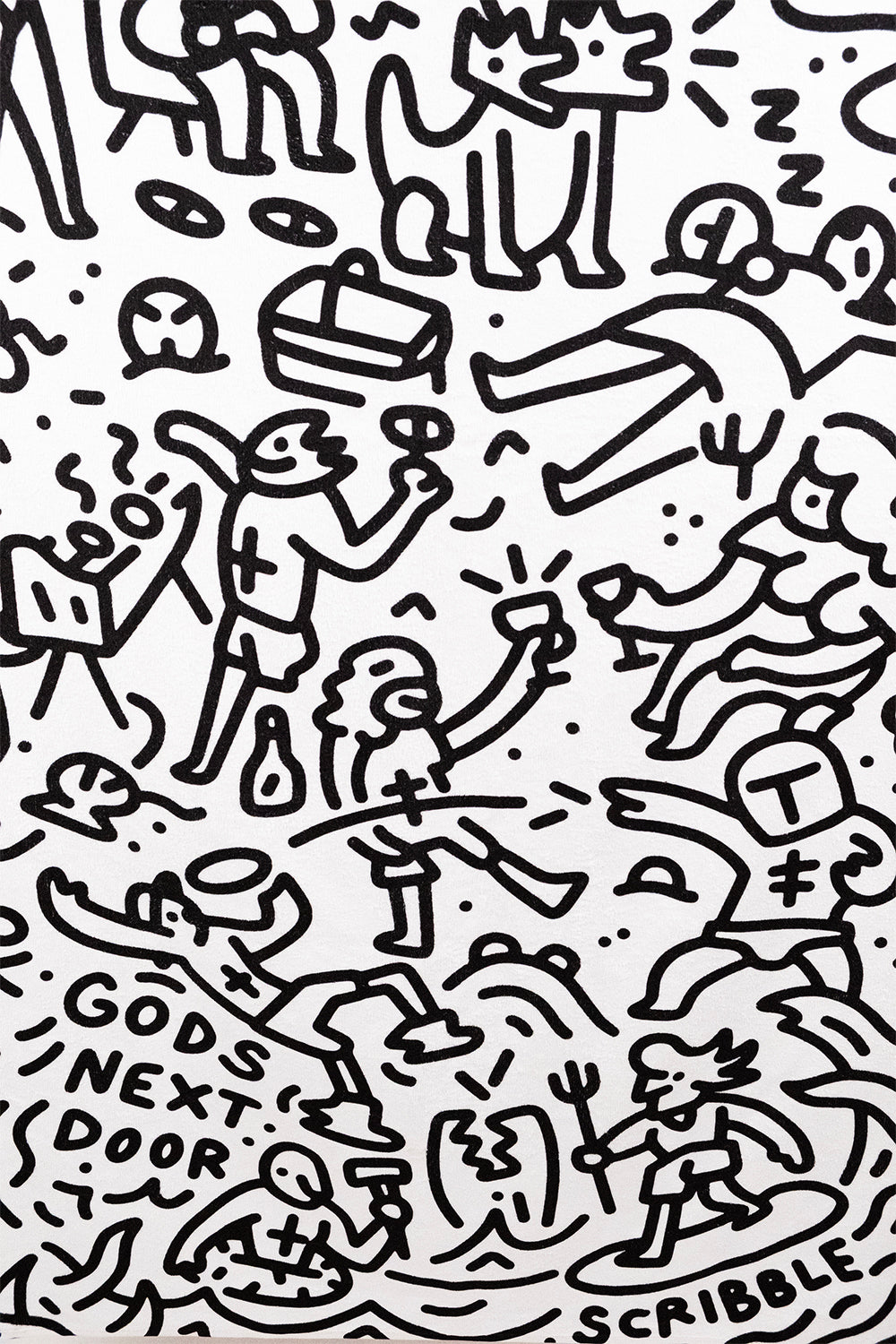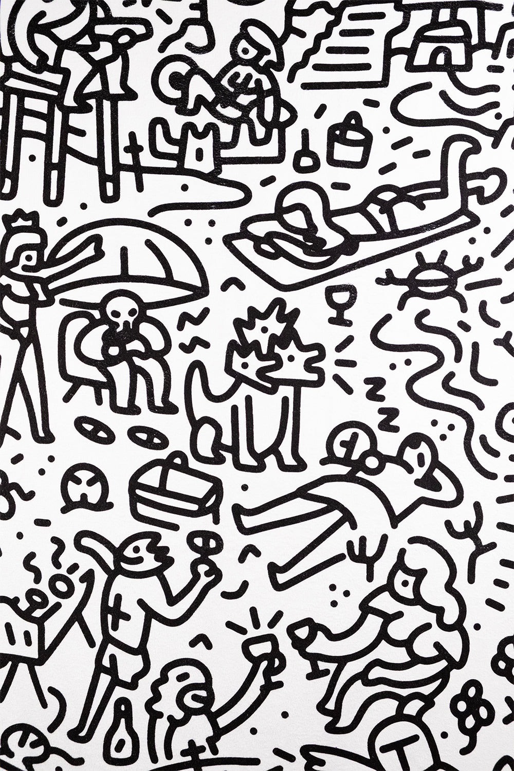 - Baskı: Tüm yüzeyi kaplayan siyah-beyaz illüstrasyon baskı