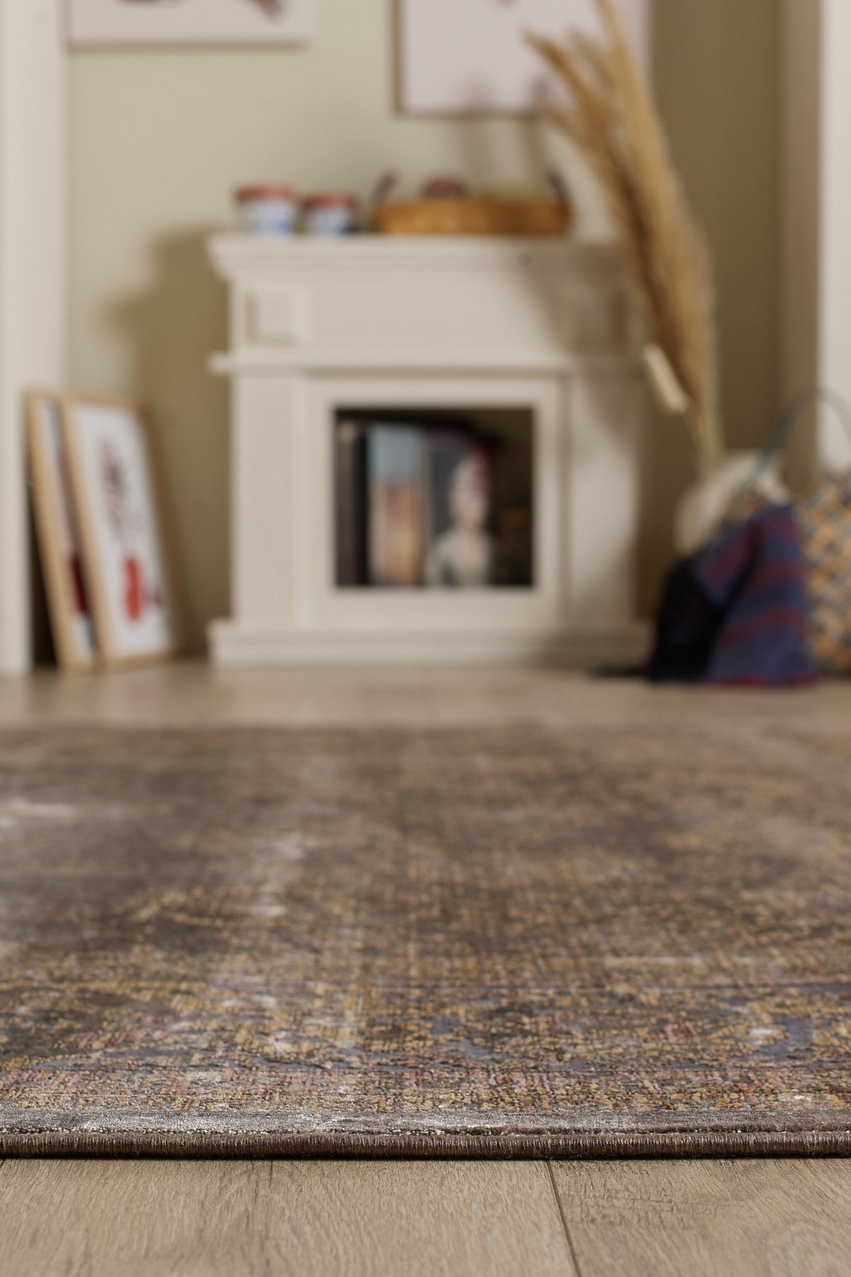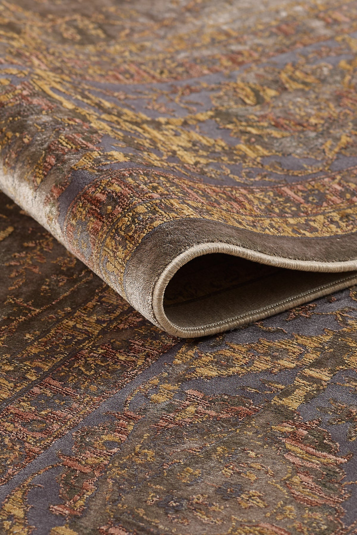 İpliği polyester akrilik ve viskondan oluşmaktadır. Taban malzemesi %100 pamuktur. Kendinden saçaklı halıdır.Modern-eskitme desene sahiptir. Oturma odası Yatak odası Antre Hol ve Salon kullanımına uygundur. Yerden ısıtmalı alanlarda kullanılabilir. Taban yalıtımına katkı sağlar.*Pamuk tabanlı halıların en veya boylarında %3 kısalma görülebilir. *Hav Yüksekliği/Kalınlık: 5,5 mm **Halıların fotoğraf çekimi esnasında doğru açı ve doğru yansıma için azami dikkati göstermekteyiz fakat ortam ışığı ve dış etkenlerden dolayı halının görseli ve halının kendisi ile renk farklılıkları olabilmektedir.