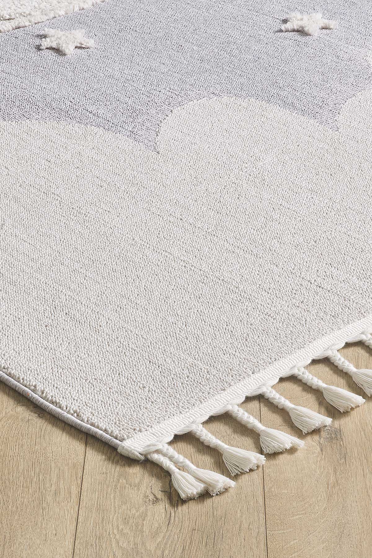 Kids Cloudy Figürlü Takma Saçaklı Antialerjik Dikdörtgen Halı