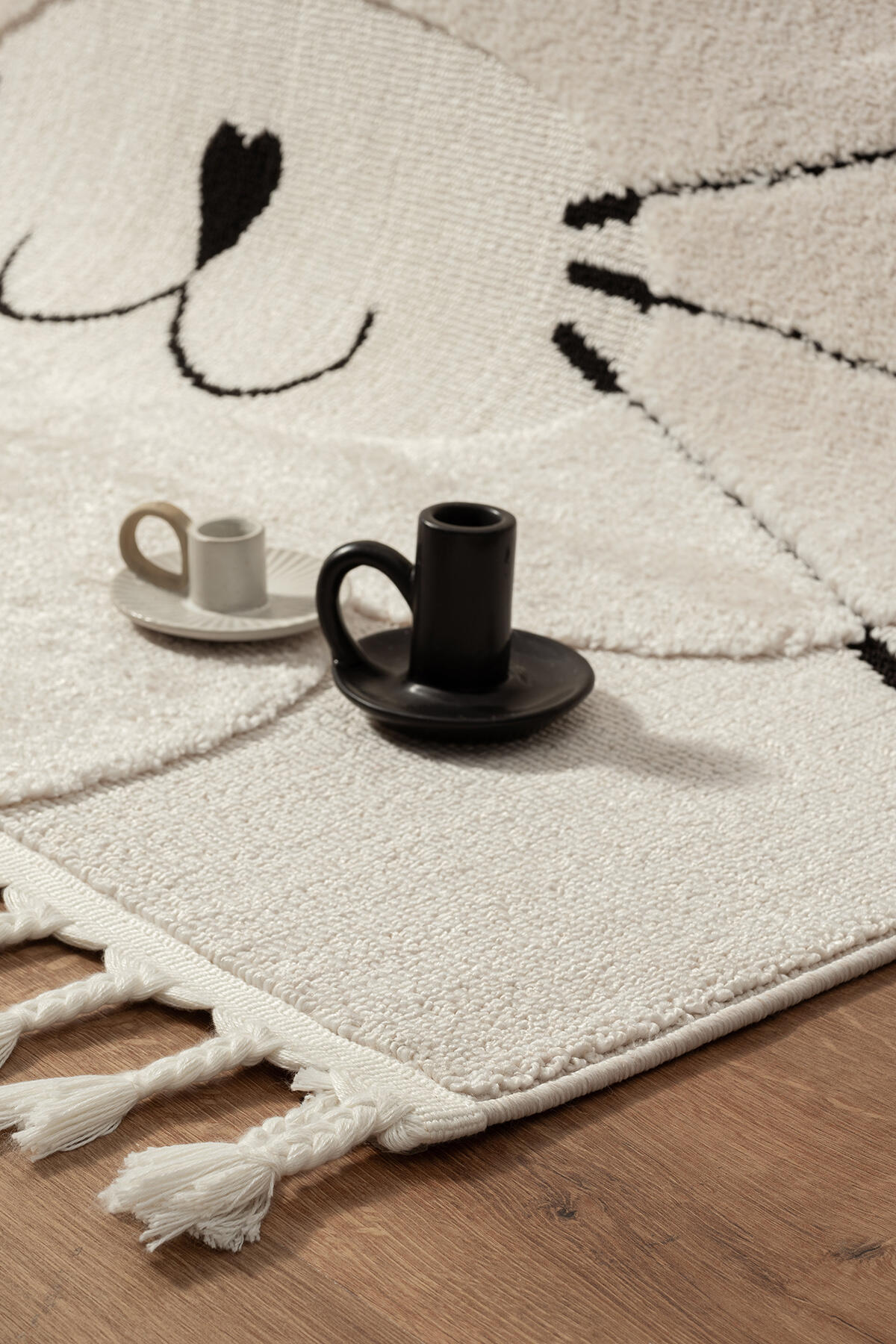 İpliği polyesterdir, taban malzemesi %100 pamuktur. Saçaklıdır. Yıldız figür deseni ile halı modası evinize gelir. Çocuk odası kullanımına uygundur. Yerden ısıtmalı alanlarda kullanılabilir. Taban yalıtımına katkı sağlar.