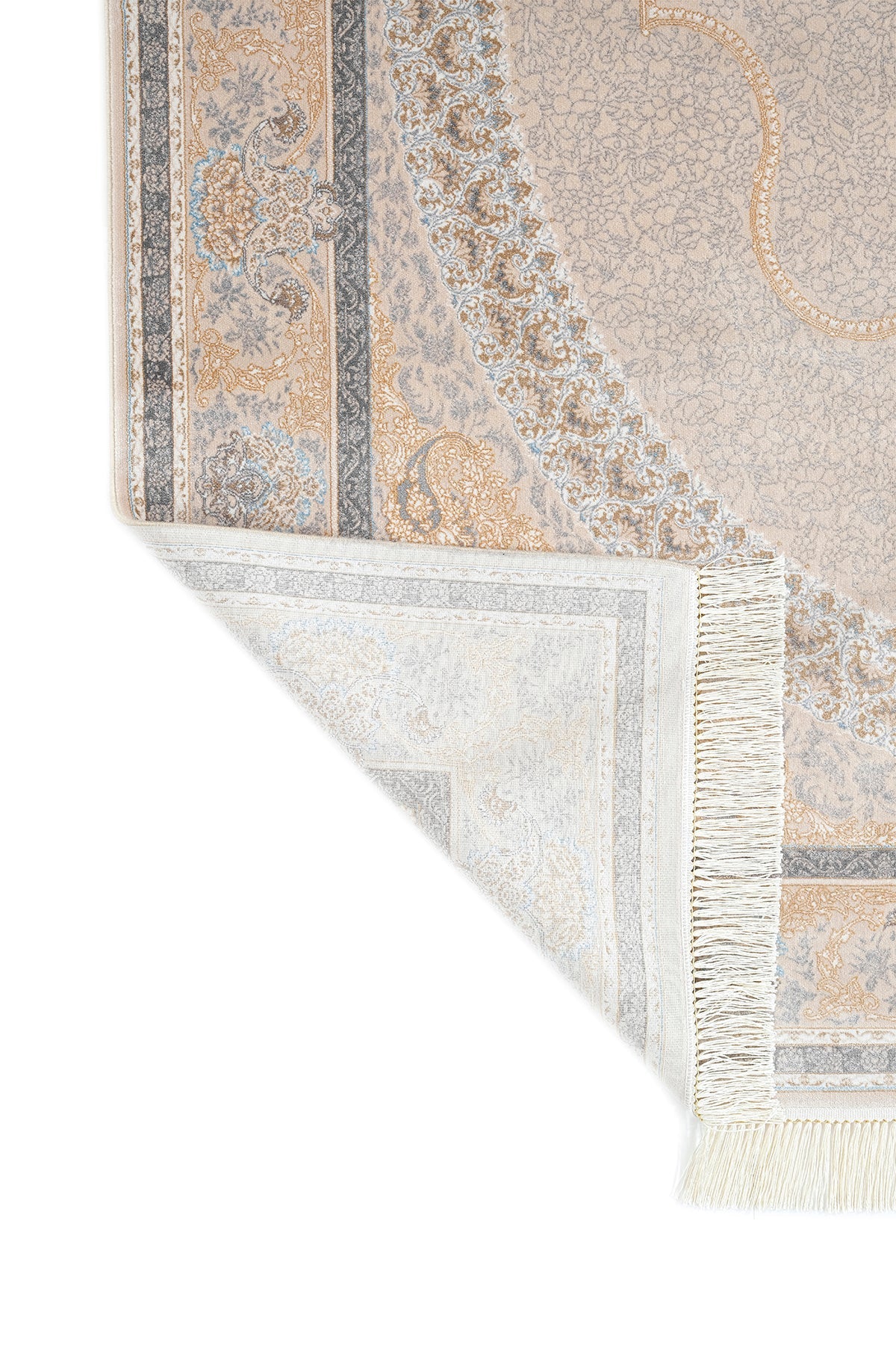 İpliği Viskon. Taban malzemesi %100 pamuktur. Püsküllü Saçaklıdır. Klasik, Modern - Klasik desenleri ile halı modası evinize gelir. Klasik ve Modern tarzı mobilyalar ile uyumludur. Oturma Odası, Yatak Odası, Salon kullanımına uygundur. Yerden ısıtmalı alanlarda kullanılabilir. Taban yalıtımına katkı sağlar.