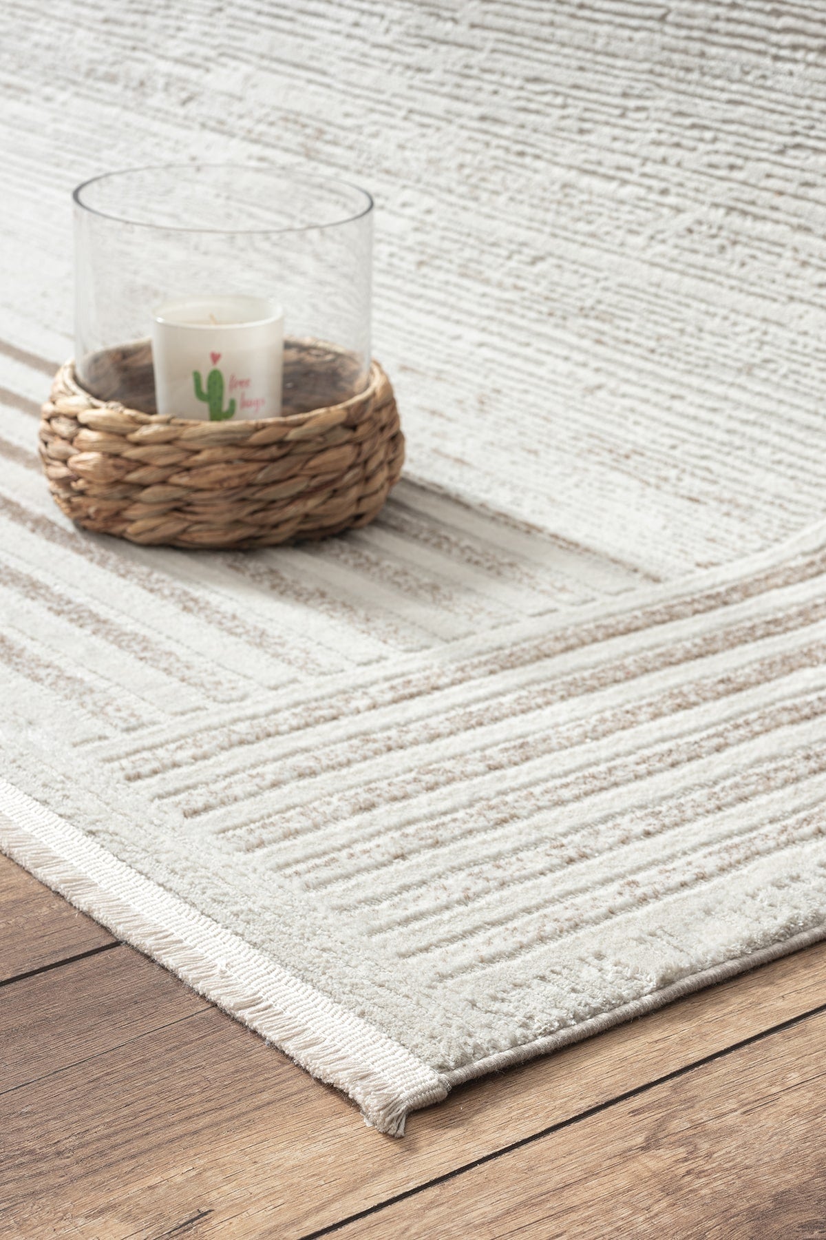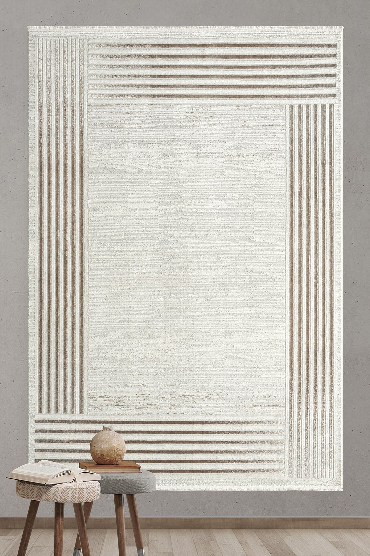 İpliği polyesterdir, taban malzemesi %100 pamuktur. Saçaklıdır. Çerçeveli deseni ile halı modası evinize gelir, modern ve klasik mobilyalar ile uyumludur. Salon, oturma odası, yatak odası, antre, hol kullanımına uygundur. Yerden ısıtmalı alanlarda kullanılabilir. Taban yalıtımına katkı sağlar.
