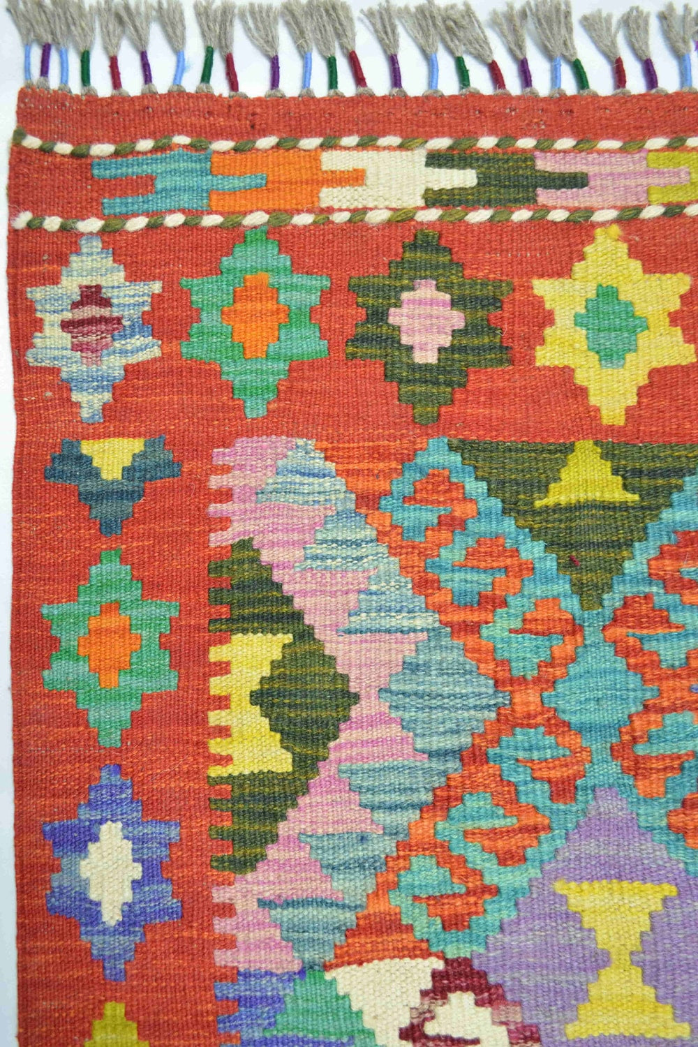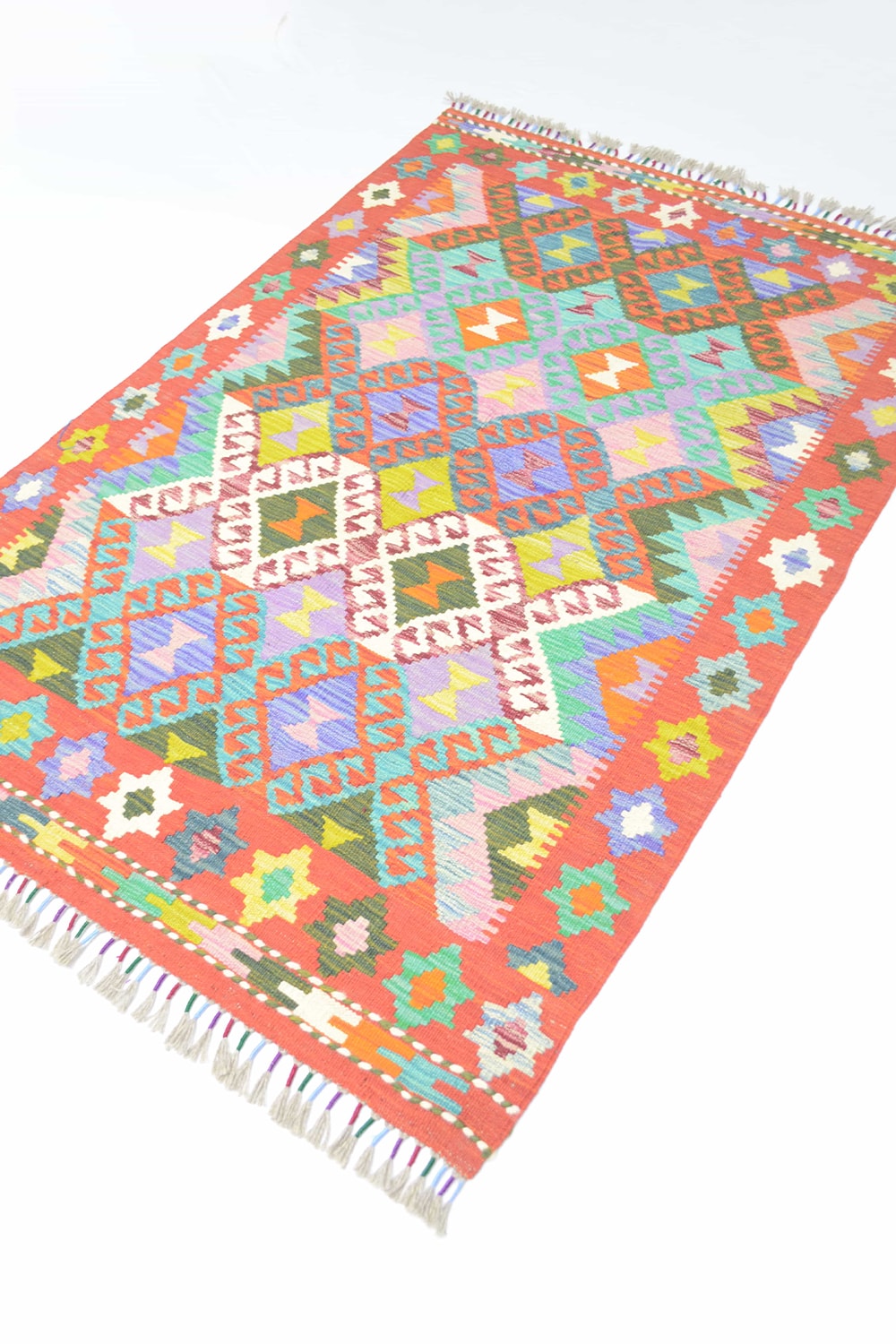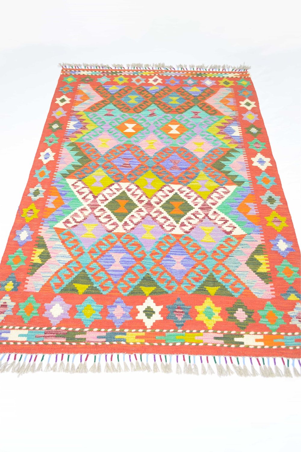 Yün İplikten El Dokuma Kırmızı Renk Afgan Kilim 100x150 Cm