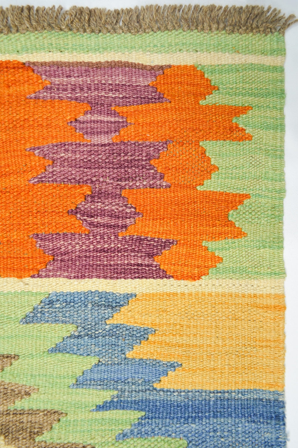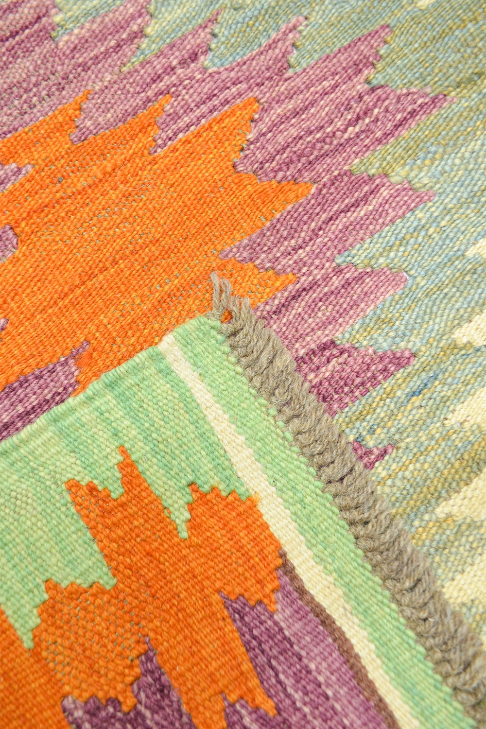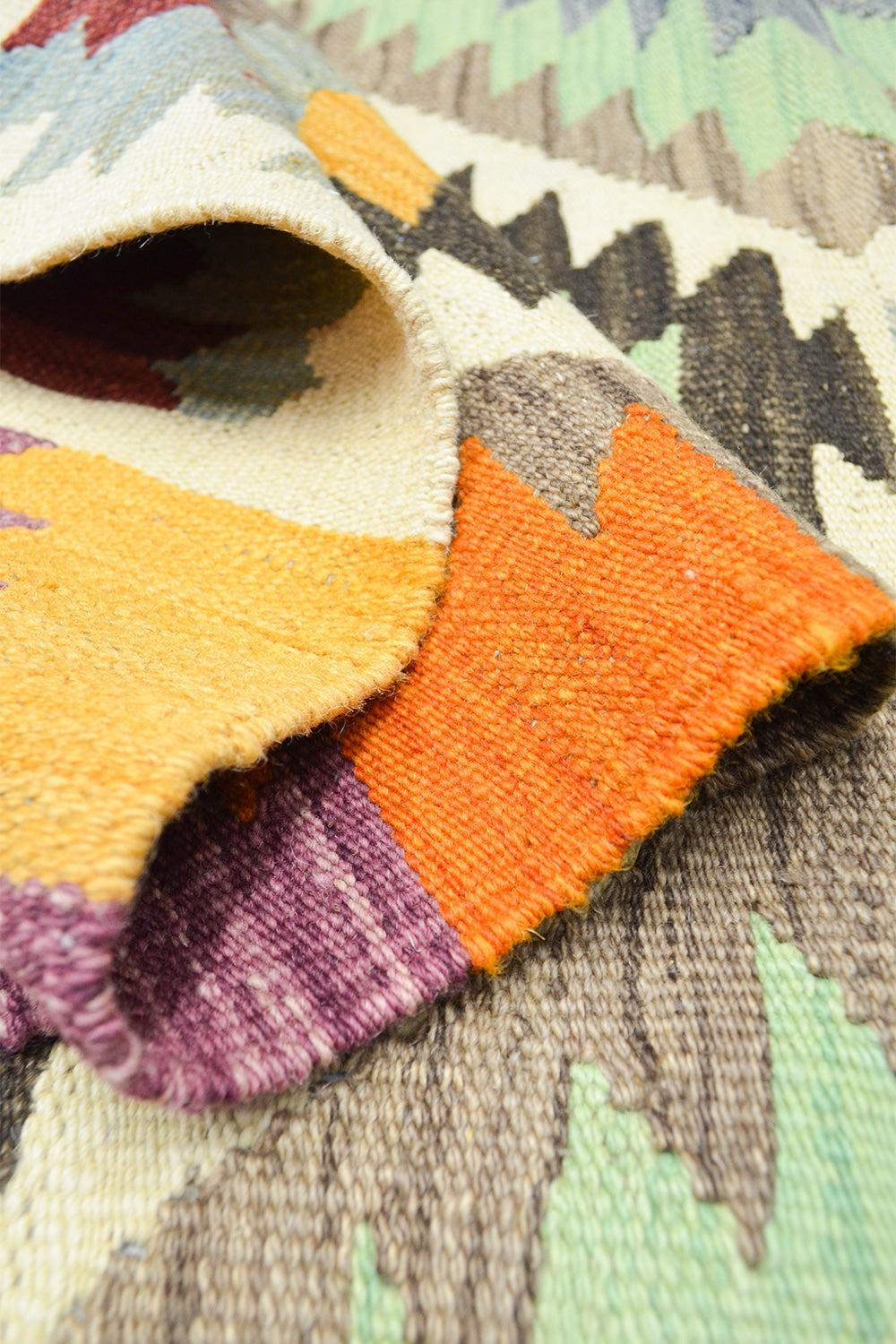 Bu Afgan Kilimi, tamamen yün ipliklerle el dokuması olarak hazırlanmıştır. Çok renkli desenleri, mekânlara canlılık ve otantik bir hava katar. Geleneksel Afgan dokuma teknikleriyle üretilen bu kilim, hem dekoratif hem de fonksiyonel bir kullanım sunar.