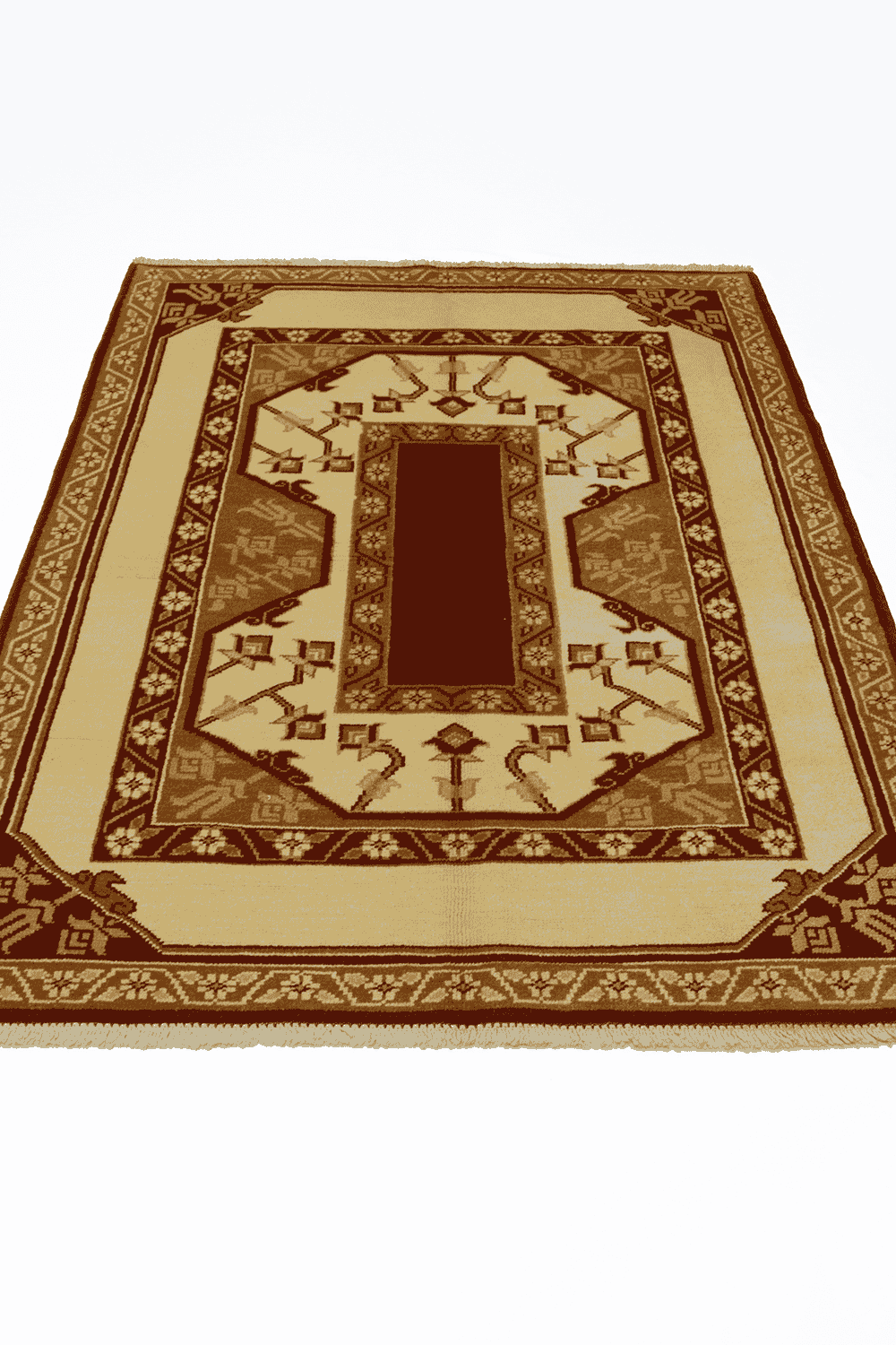 Bu Milas Halısı, tamamen yün ipliklerle el dokuma tekniğiyle üretilmiş, geleneksel Anadolu motiflerini yansıtan bir parçadır. Bordo ve bej renklerin uyumu, halıya klasik ve şık bir görünüm kazandırır. 116x159 cm ölçüsüyle salon, oturma odası veya giriş alanlarında hem dekoratif hem fonksiyonel kullanım sağlar. Yün dokusu, dayanıklılık ve uzun ömür sunar.
