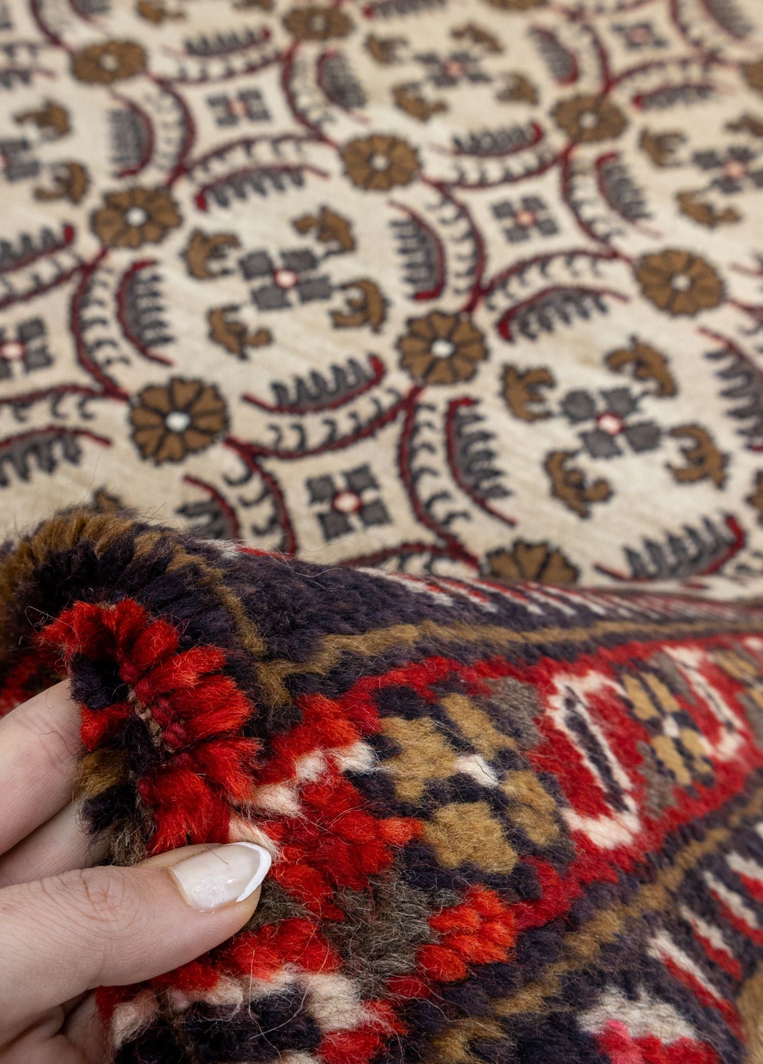 Yaşam alanınıza farklılık katacak olan Soho Antiq gelenekselhalı modellerimizle karşınızdayız! Özel olarak tasarlanan bu halılar, her türlüalana uyum sağlamak üzere el dokuma tekniği ile özenle hazırlanmıştır vetamamen doğal yünden oluşmaktadır. Bu da halıları diğerlerinden farklı kılanbirçok özellikten sadece bir tanesidir. Ana rengi bej olan halı modelimizde, kırmızı, siyah ve kahverengi gibi yan renkler bulunmaktadır. Bu uyumlu renk kombinasyonlarıyla estetikbir halıya sahip olabilirsiniz.