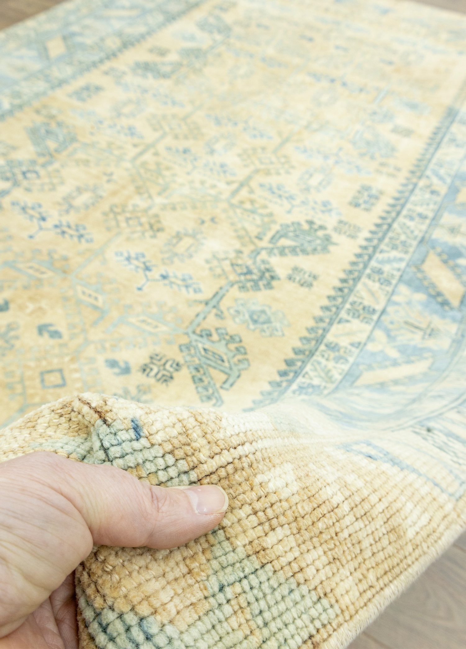 Soho Antiq el dokuma halı ve kilimleri, yaşam alanlarınızanefes katmak için tasarlanmıştır. Bu zarif el dokuma halı, özenle seçilmişyüksek kaliteli yün ipliklerinin ustalıkla bir araya getirilmesiyleoluşturulmuştur. Geleneksel el dokuma teknikleri kullanılarak üretilen halı,evinize sıcaklık ve zarafet katmak amacıyla özel olarak tasarlanmıştır. Renkpaleti, doğanın yumuşak tonlarından ilham alınarak oluşturulmuş olup, bej, mavi ve yeşil renklerinin uyumuyla dikkat çekerken halı içerisinde bulunan diğer renkler ileuyumu yakalamaktadır. Halı, deneyimli el sanatçıları tarafından özenle dokunmuşve Döşemealtı yöresine özgü geleneksel tekniklerle 1970’lerde üretilmiştir, bu da halıyakültürel bir derinlik katmaktadır. Halının ebatı 207 x 294 cm olarak ölçülmüştürve bu ölçü, halının farklı yaşam alanlarına kolaylıkla uyum sağlamasını sağlar.Halının kalınlığı ise 1 - 3 cm arasındadır. Estetik değerinin ötesinde, bu eldokuma halı, evinize özgünlük ve geleneksel bir his katma konusunda öneçıkmaktadır.
