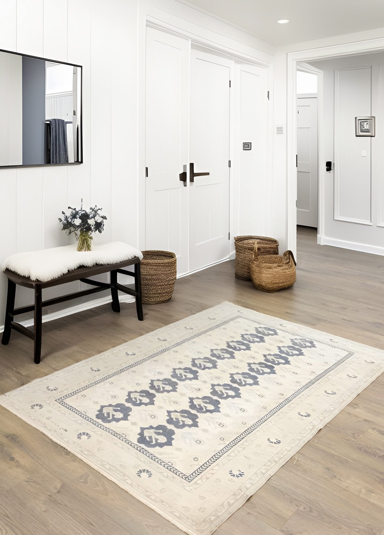 Yaşam alanınıza farklılık katacak olan Soho Antiq geleneksel halımodellerimizle karşınızdayız! Özel olarak tasarlanan bu halılar, her türlüalana uyum sağlamak üzere el dokuma tekniği ile özenle hazırlanmıştır vetamamen doğal yünden oluşmaktadır. Bu da halıları diğerlerinden farklı kılanbirçok özellikten sadece bir tanesidir. Ana rengi krem olan halı modelimizde, lacivert ve bej gibi yan renkler bulunmaktadır. Bu uyumlu renk kombinasyonlarıylaestetik bir halıya sahip olabilirsiniz.