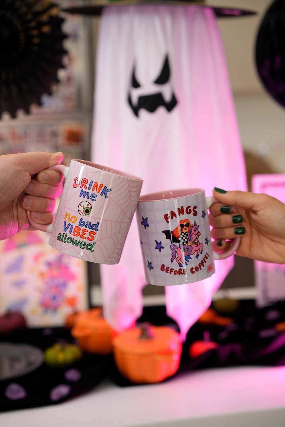 “Fangs Before Coffee” yazısı ve retro vampire girl tasarımıyla bu kupa, Cadılar Bayramı’na eğlenceli ve iddialı bir hava katıyor. Pembeli detayları, unicorn sürprizi ve komik mesajıyla sadece Halloween’de değil, her sabah kahve keyfine enerji katacak.