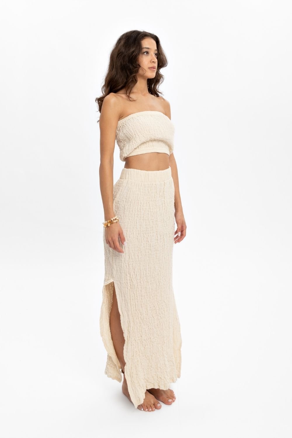 Özgürce gün boyunca giyebileceğin, bir çok crop ile kombinleyebileceğin Tek Taraflı Yırtmaçlı Etek, 4 mevsim minimal gardroplarınızda size eşlik edecek. Vücudunuzun nefes almasını sağlayan doğal içeriğe sahiptir. Kendinizi zarif hissettirmek için hoş ve akıcı. Her vesileyle giyilebilir. Hafif ve nefes alabilen dokusuyla size gün boyu eşlik edecektir.