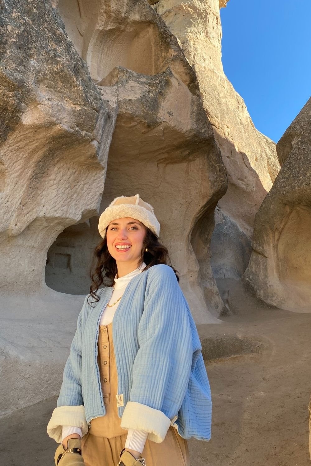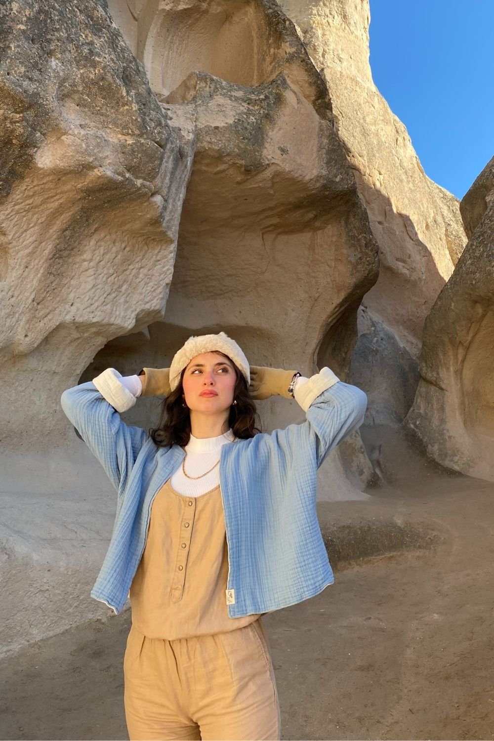 Vücudunuzun nefes almasını sağlayan doğal içeriğe sahiptir. Kendinizi zarif hissettirmek için hoş ve akıcı. Her vesileyle giyilebilir. Hafif ve nefes alabilen dokusuyla size gün boyu eşlik edecektir. Her mevsim kullanıma uygun bu ürün; yaz aylarında serin, kış aylarında ise sıcak tutar. Reversible özelliği sayesinde çift tarafını da kullanabilirsiniz.