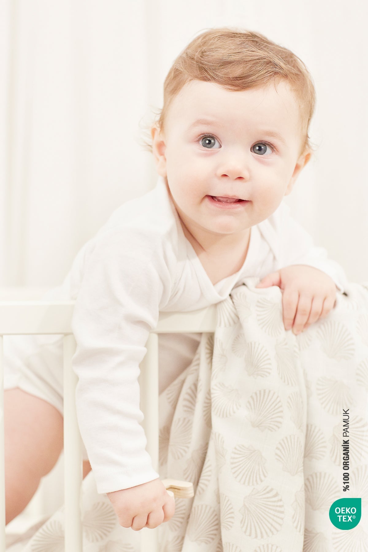 Bebe Marin Seashell Müslin Battaniye 120x120 Beyaz
