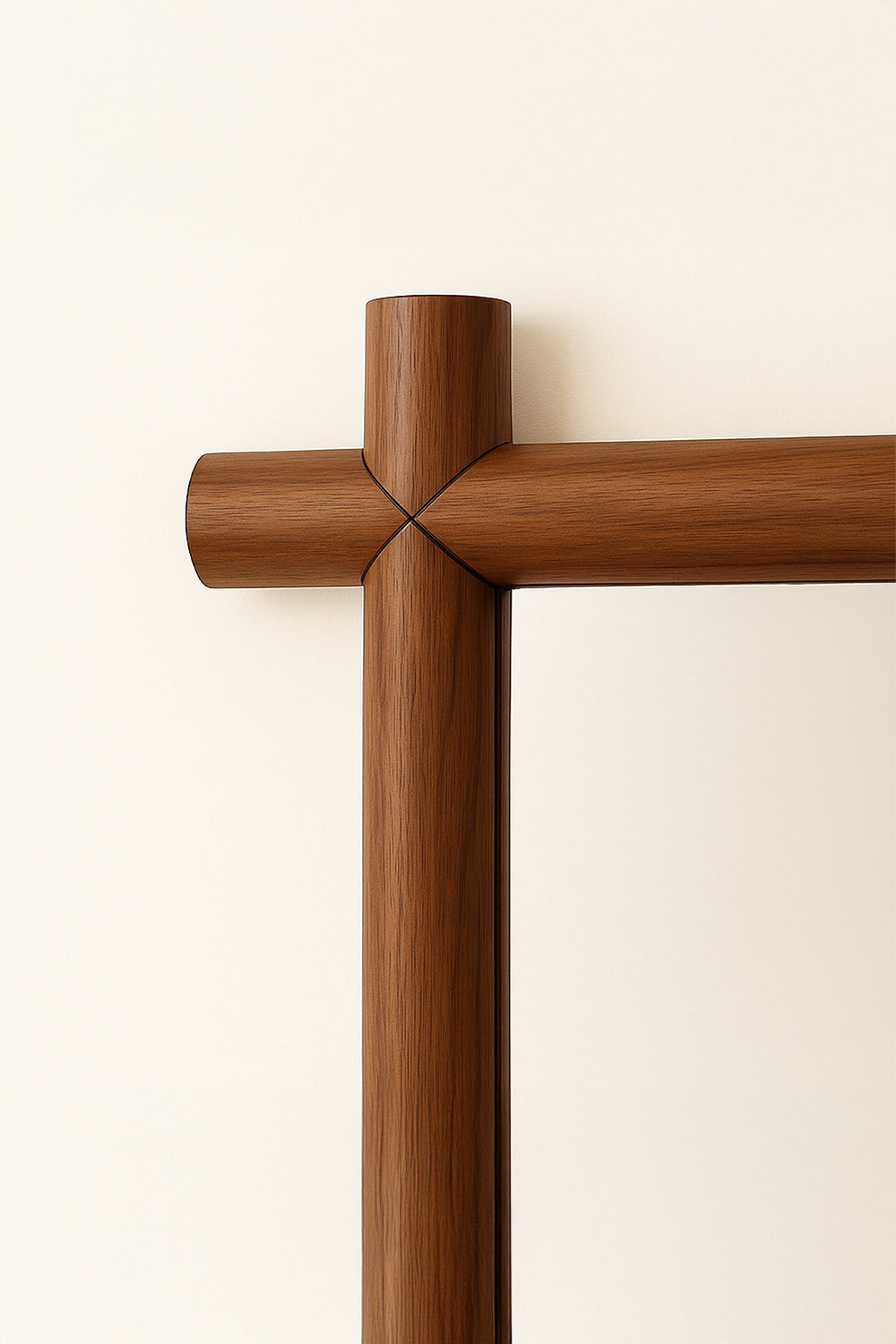 Frame Ayna, yalın geometriyi endüstriyel bir incelikle buluşturur. Kalın tübüler çerçevesi ve hassas metal birleşim noktalarıyla tanımlanan bu parça, fonksiyonel bir objeyi yapısal bir ifadeye dönüştürür.