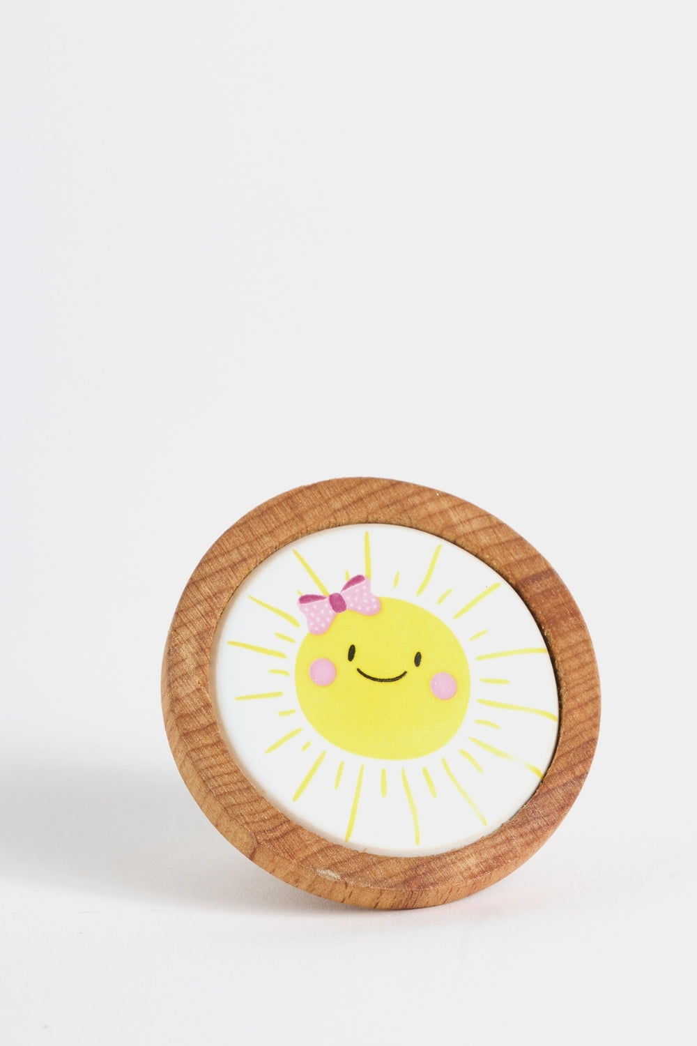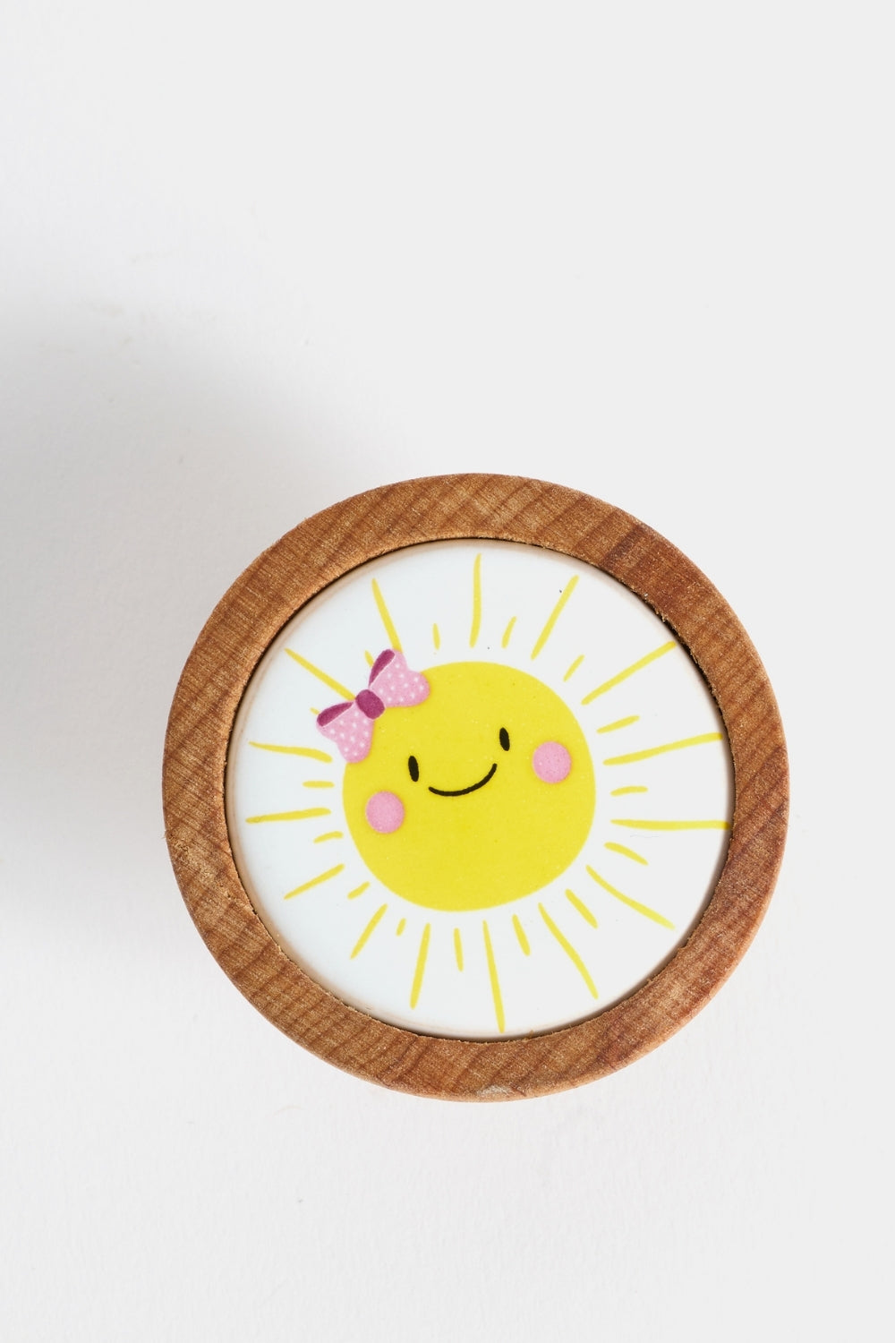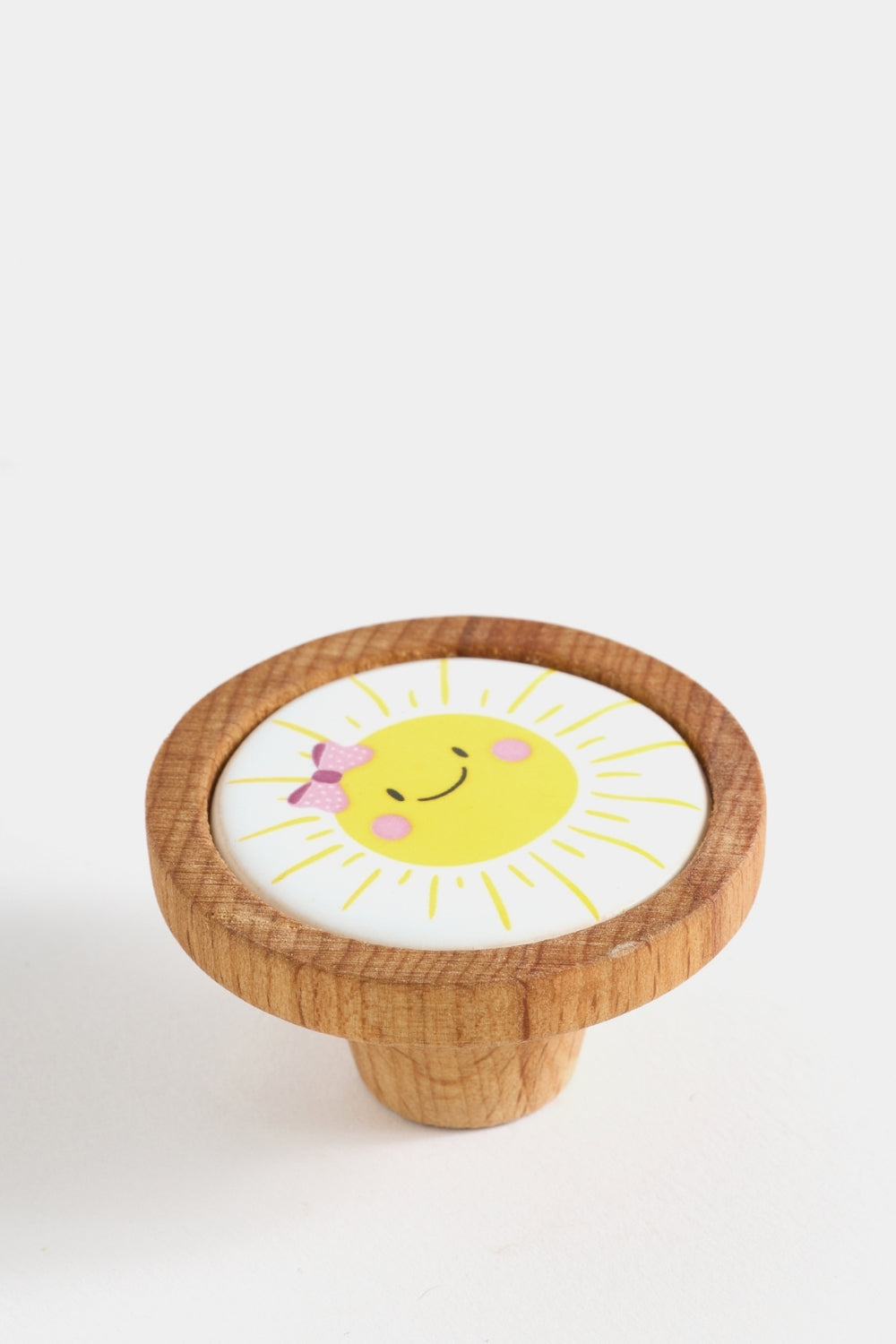 Güneş Desenli Porselen Ve Ahşap Tekli Çocuk Kulp