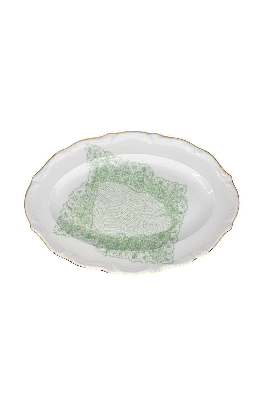 - Paket İçeriği: 27 cm Porselen Oval Tabak / Gold Rim (1 Adet)
