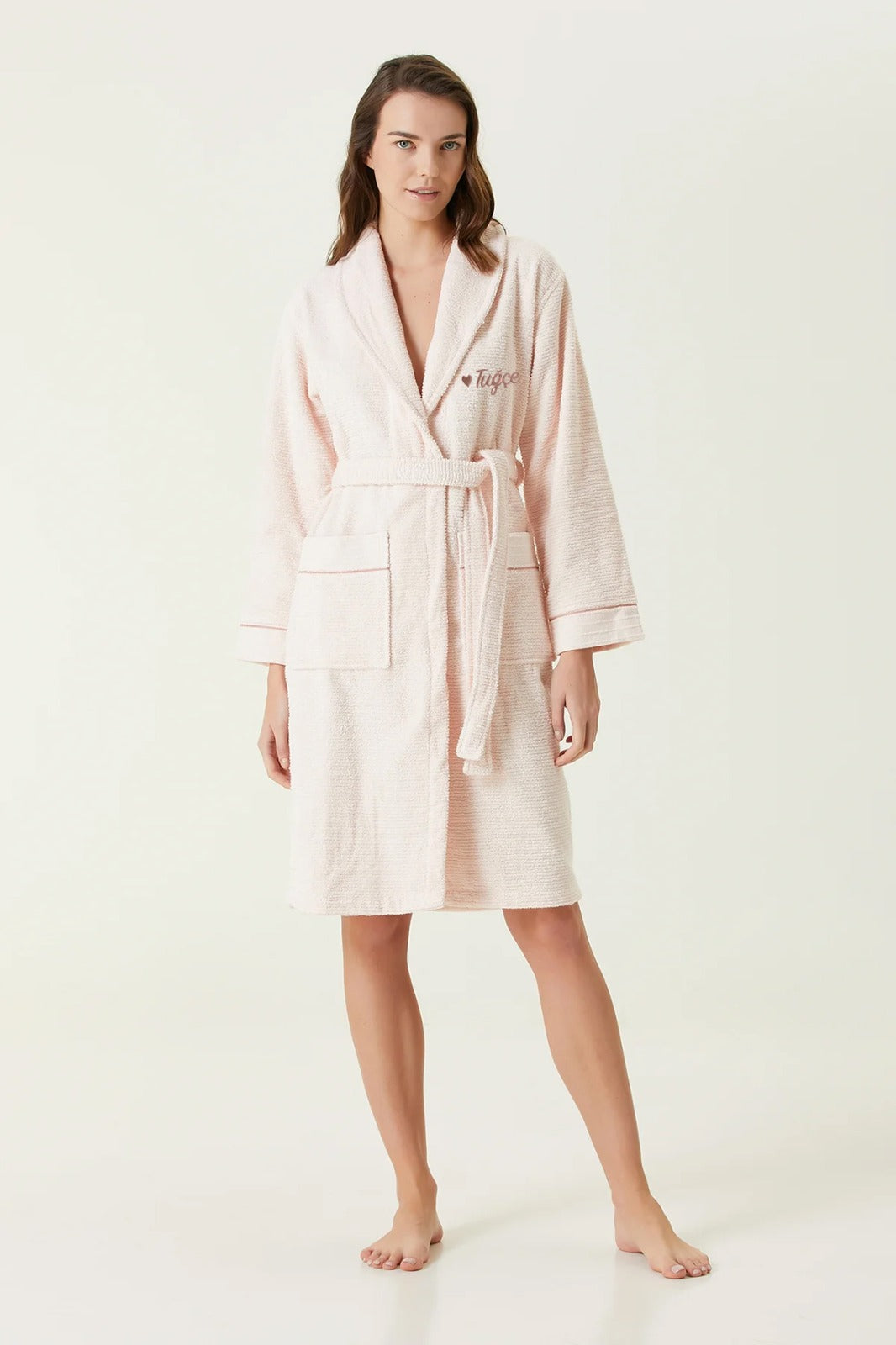 Roya Kişiselleştirilmiş Nakışlı Kadın Bornoz Pudra