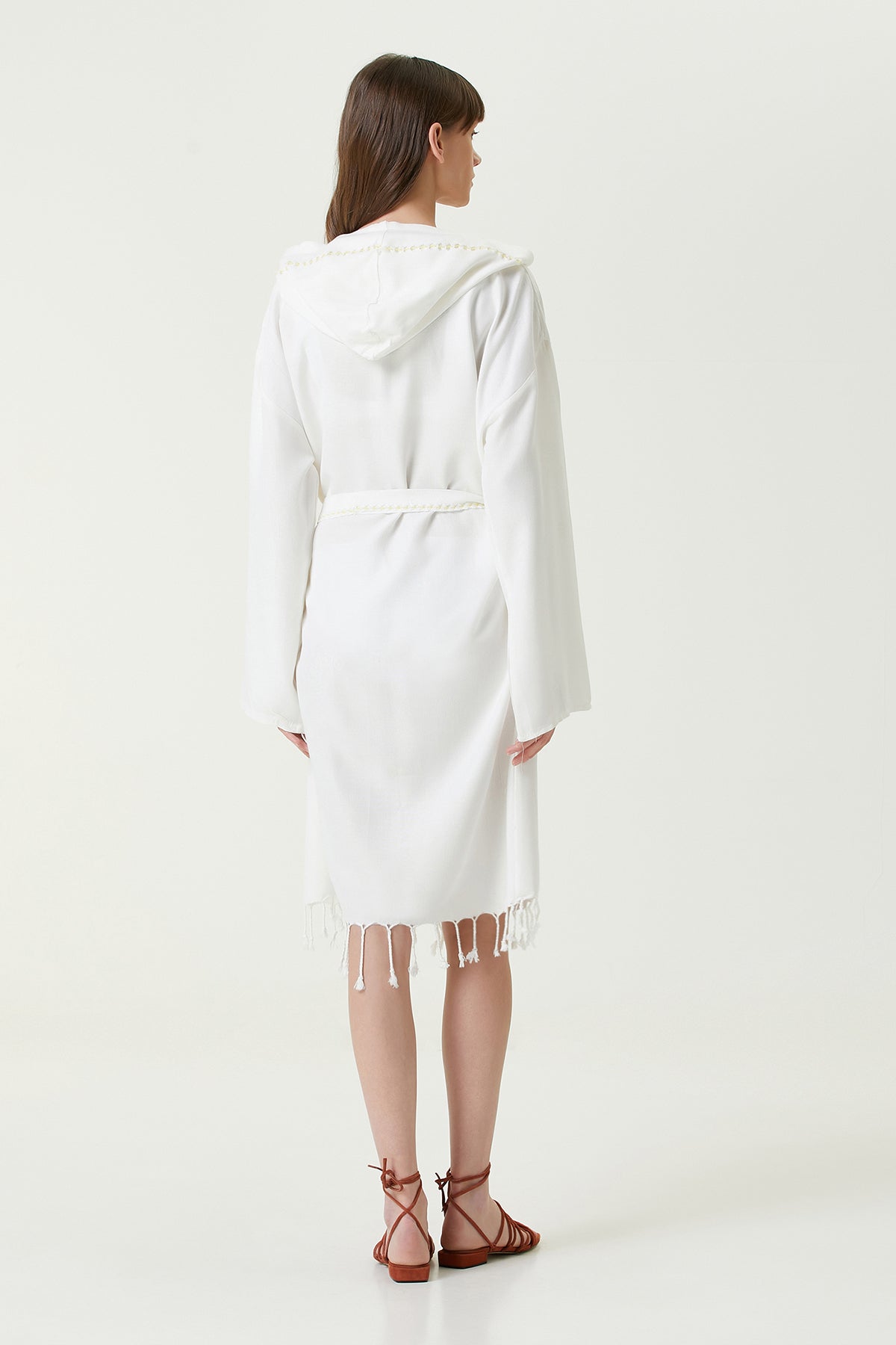 Serene Peştamal Kadın Bornoz Sarı Örgü Ajur