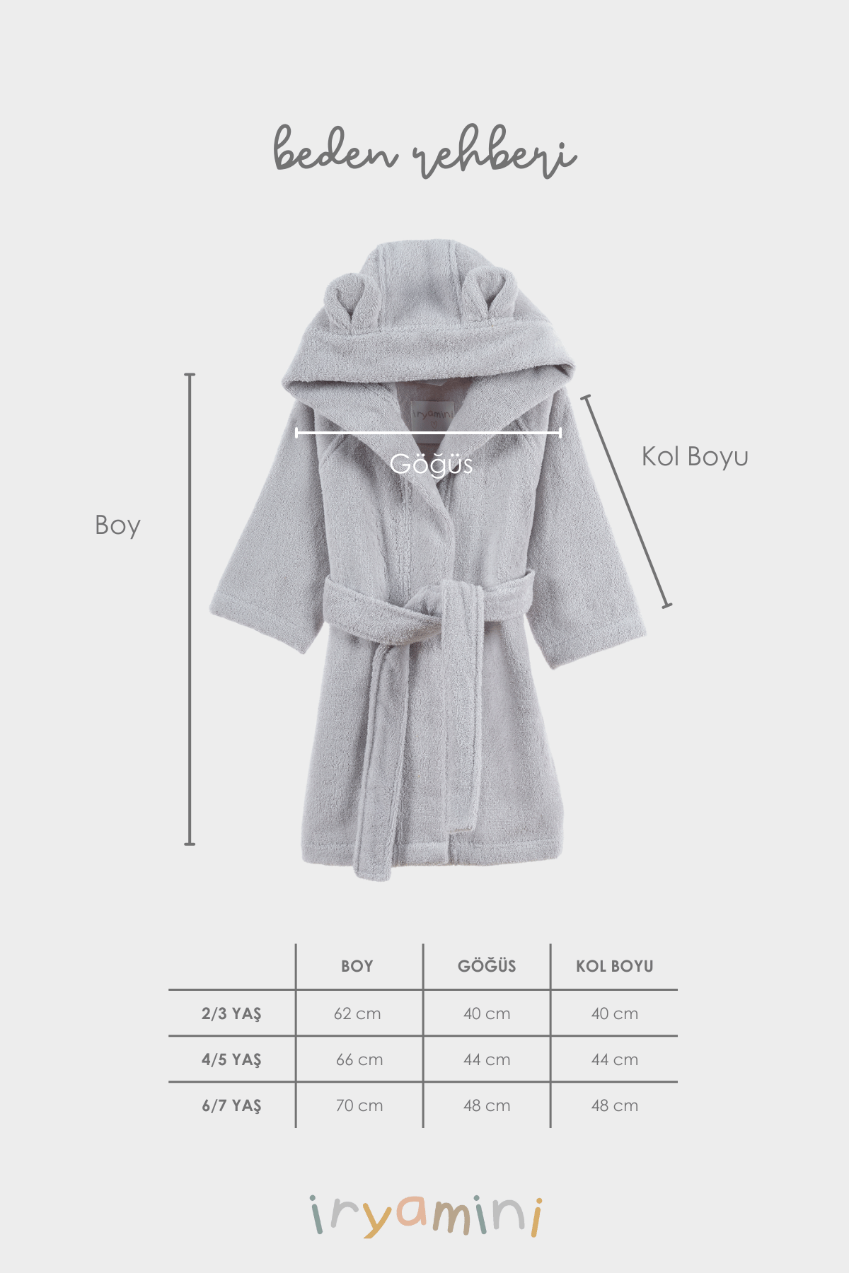 Tiny Bear Organik Pamuk Çocuk Bornoz Gri