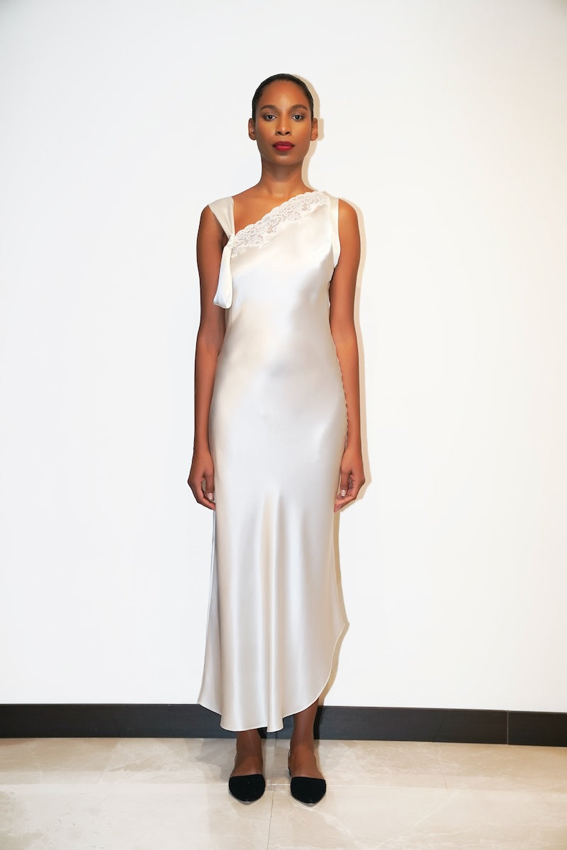 İpek Kıramer klasikleri arasında yer alacak bu model, rahatlığın ve şıklığın ön planda tutulduğu, kullanımı kolay bir modeldir. %100 ipek kumaş ve Fransız ipek-pamuk danteli kullanılarak oluşturulan her parça, %50 el yapımı, %50 makine işçiliğiyle üretiliyor.