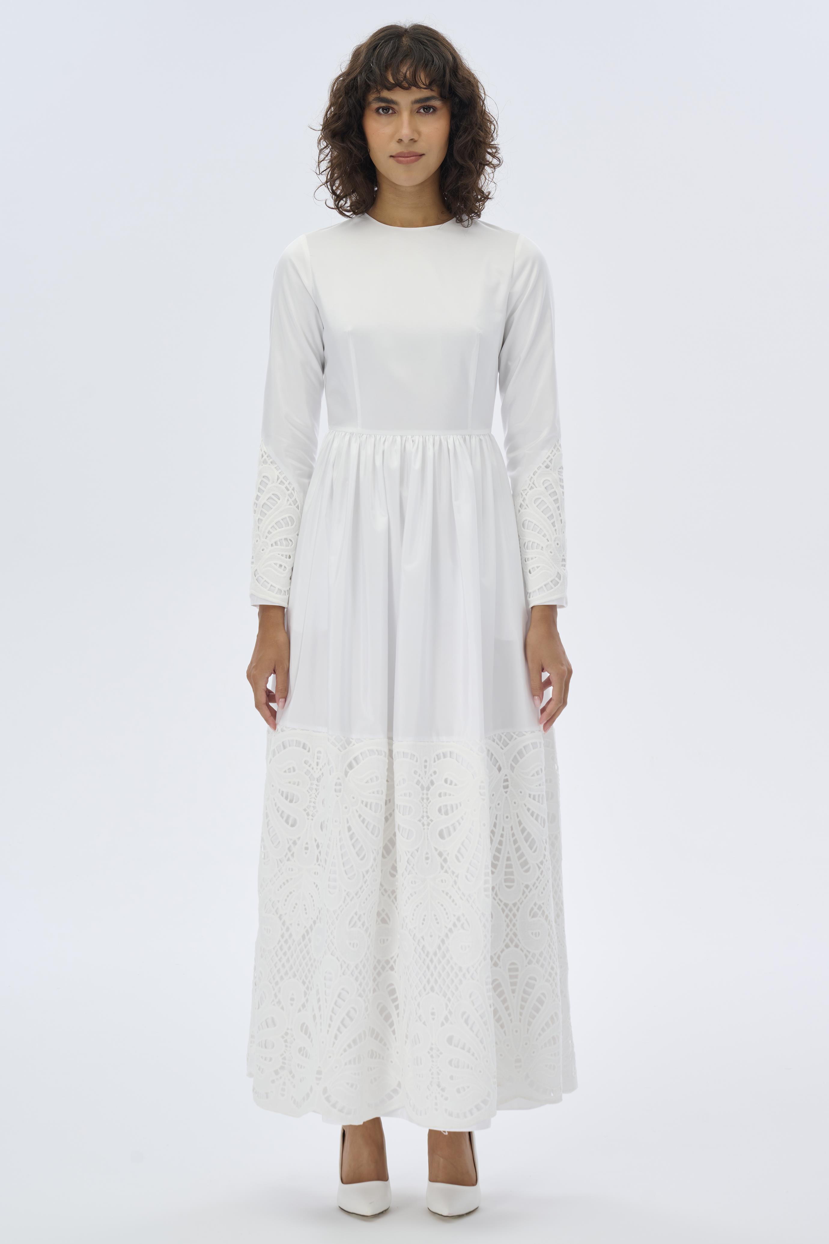- Ürün Açıklaması: Brode danteli sadece etek ucunda ve kolların da olan bu elbise; üzerinize tam oturarak sizi prenses gibi hissettirecek.