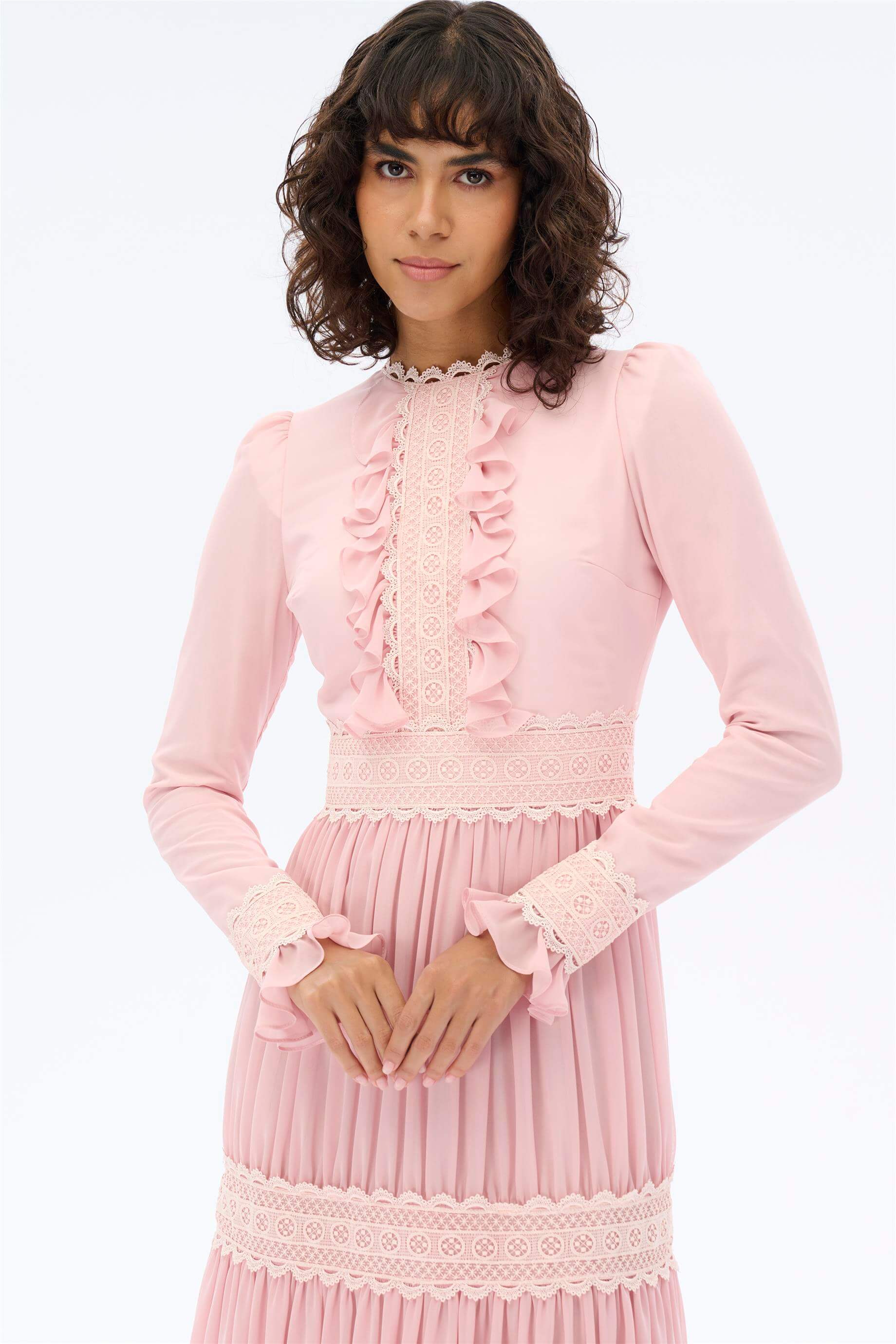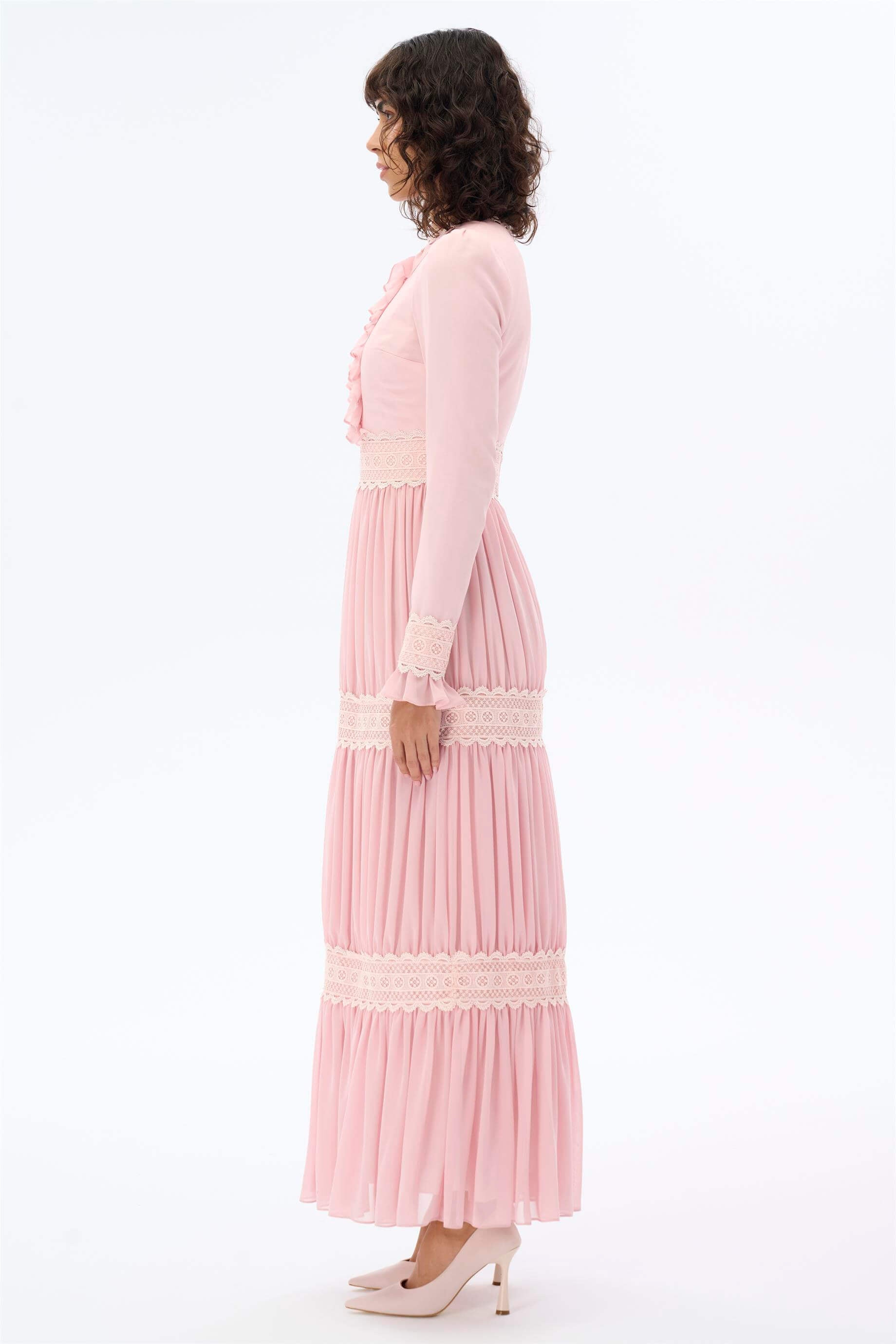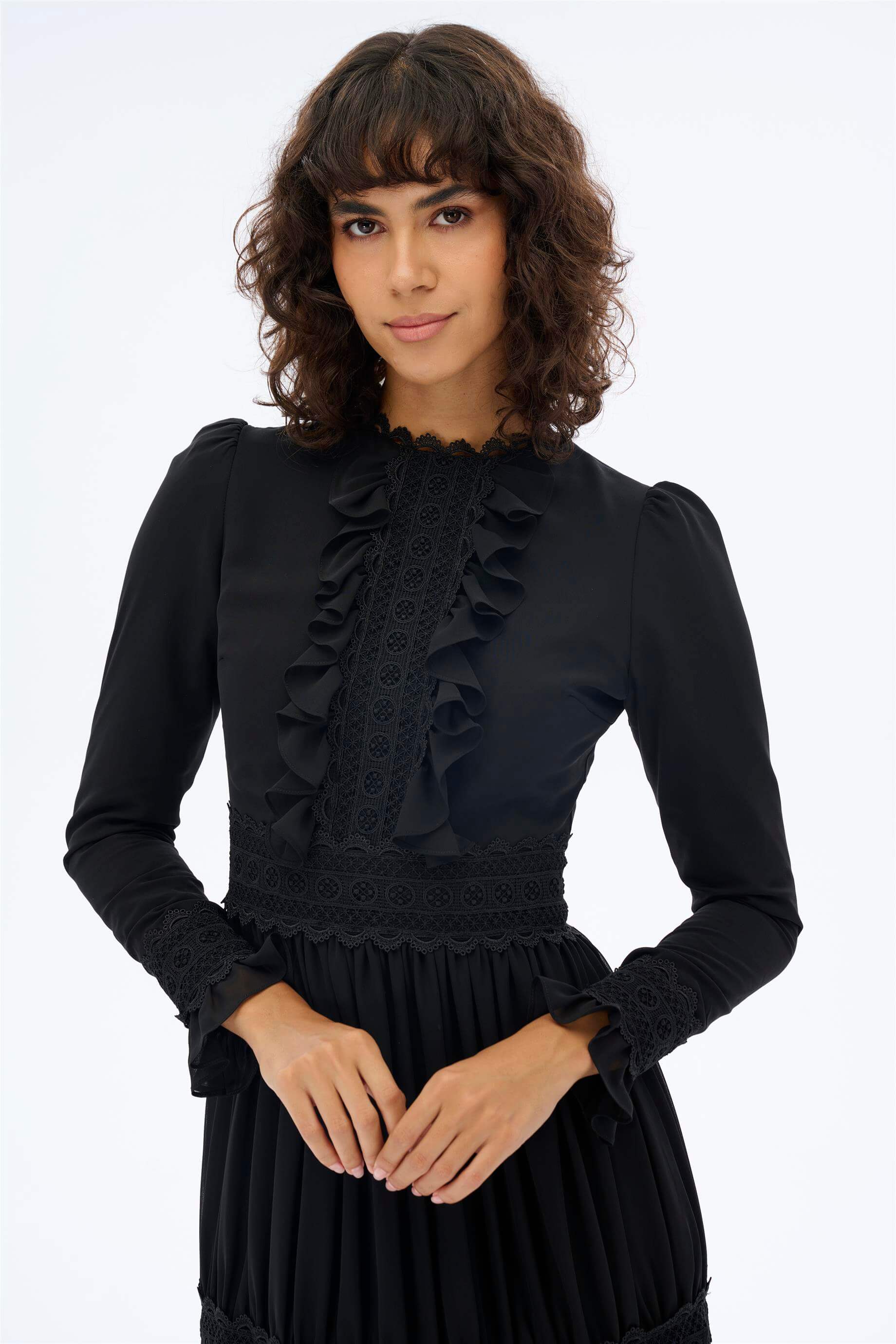 - Ürün Açıklaması: Ön formunda ki dantel fırfır detayıyla dikkat çeken elbise, bel ve etek katları ile şıklığınızı en üst seviyeye taşıyacak.