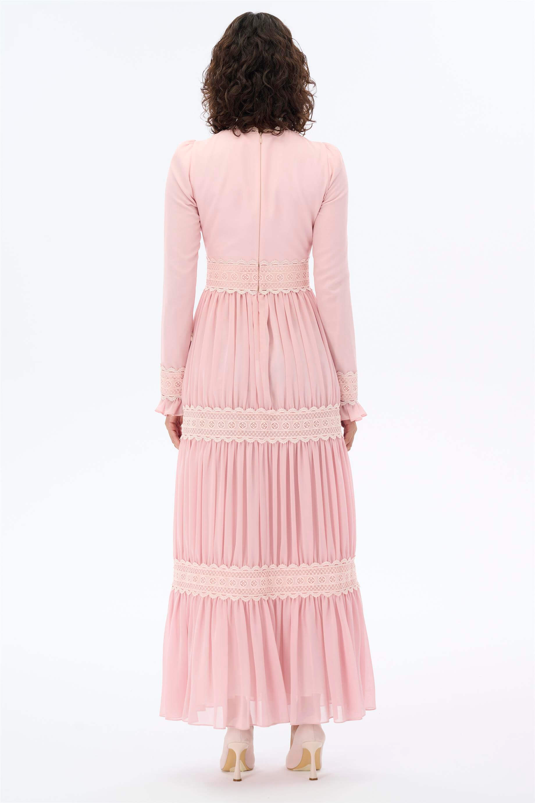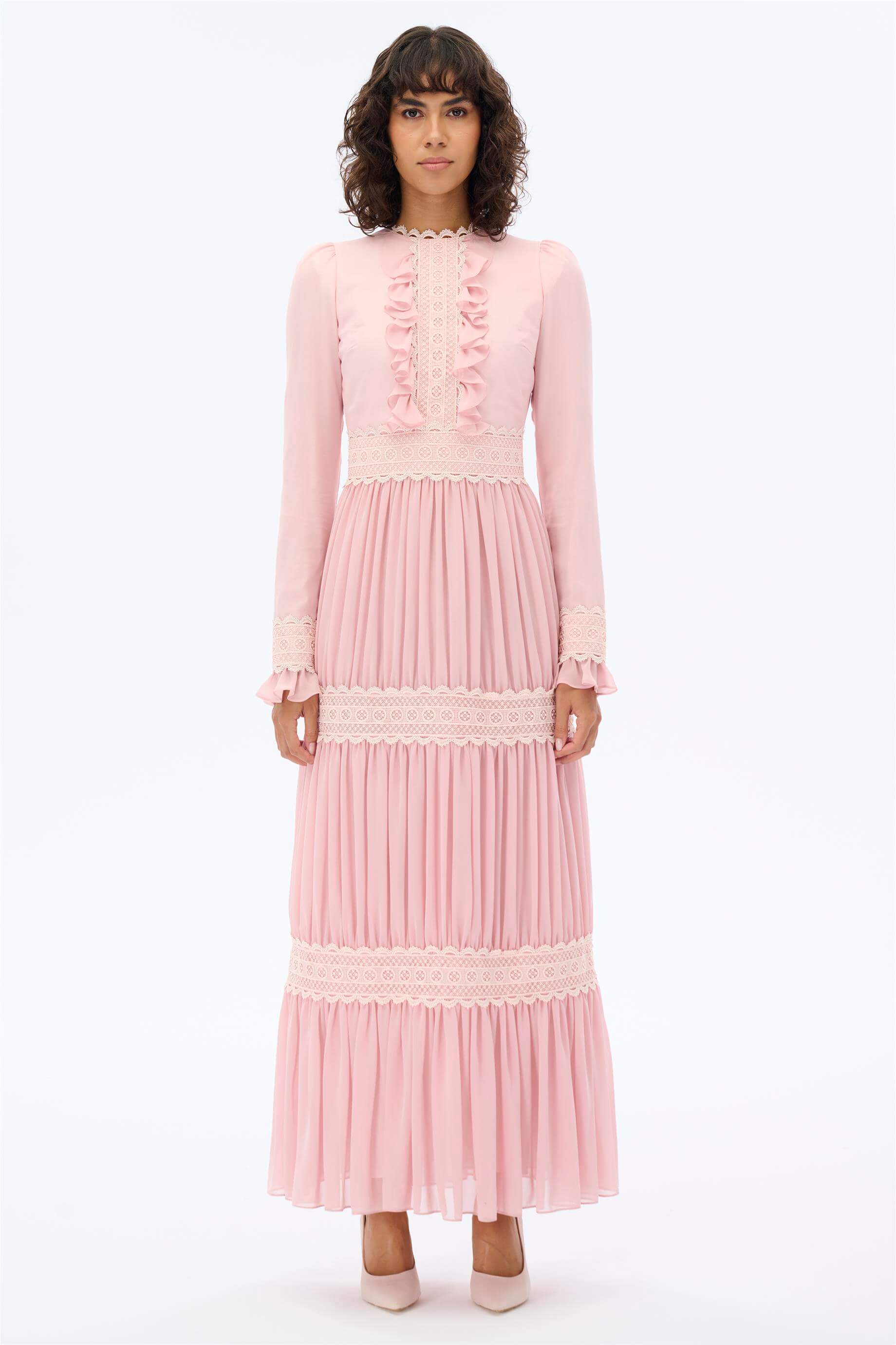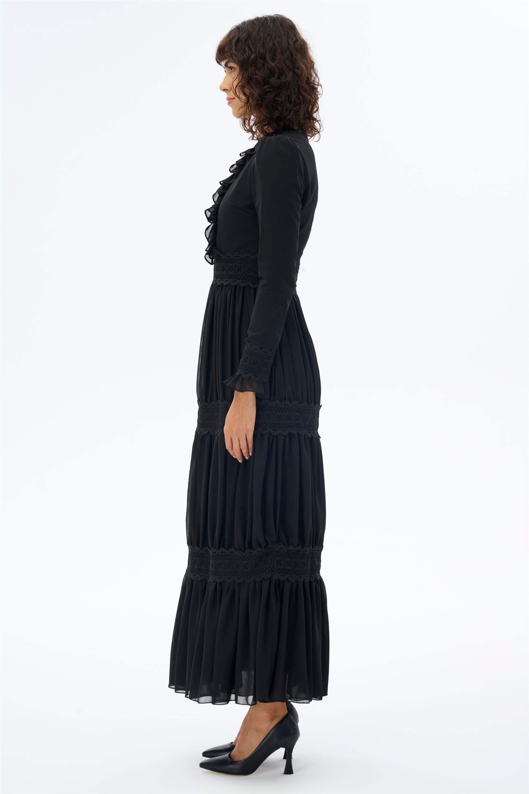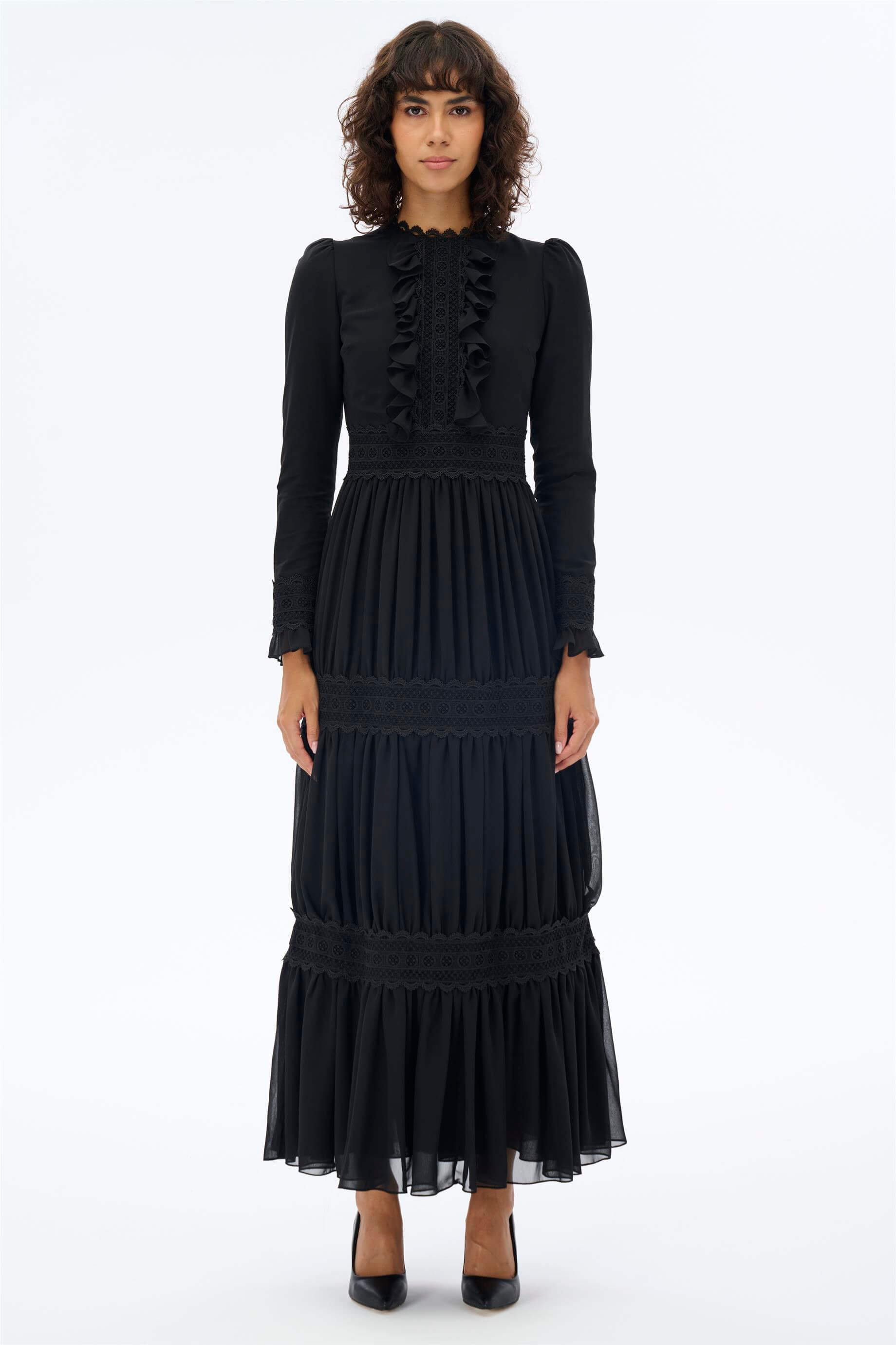 - Ürün Açıklaması: Ön formunda ki dantel fırfır detayıyla dikkat çeken elbise, bel ve etek katları ile şıklığınızı en üst seviyeye taşıyacak.