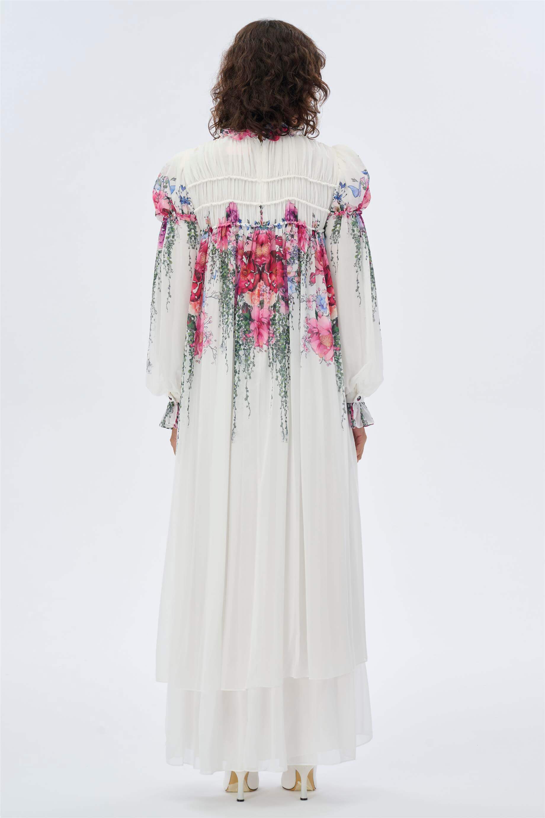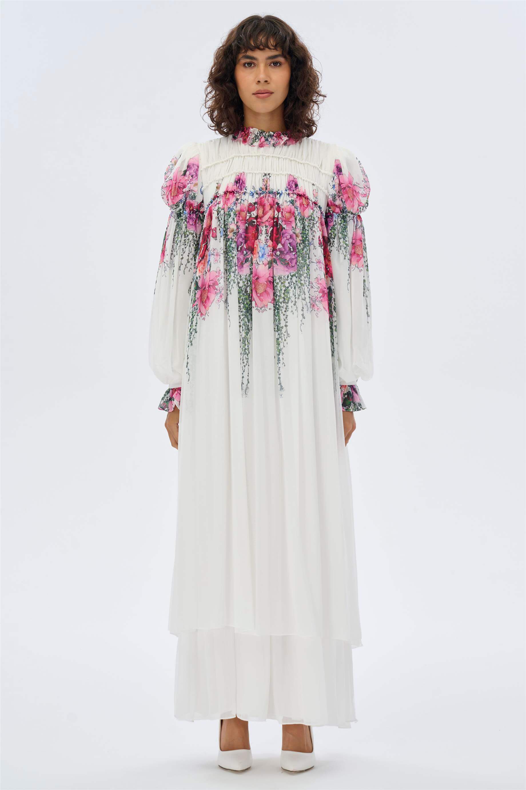 - Ürün Açıklaması: Yakası fırfırlı ve ön bedeni aller büzgülü bu benzersiz elbise, balon koluyla sizi özel hissettiricek ve tarzınızı boyutlandırmanız için ideal bir seçenek. Geniş kesim eteğiyle içinde kendinizi prensesler gibi hissedeceksiniz.