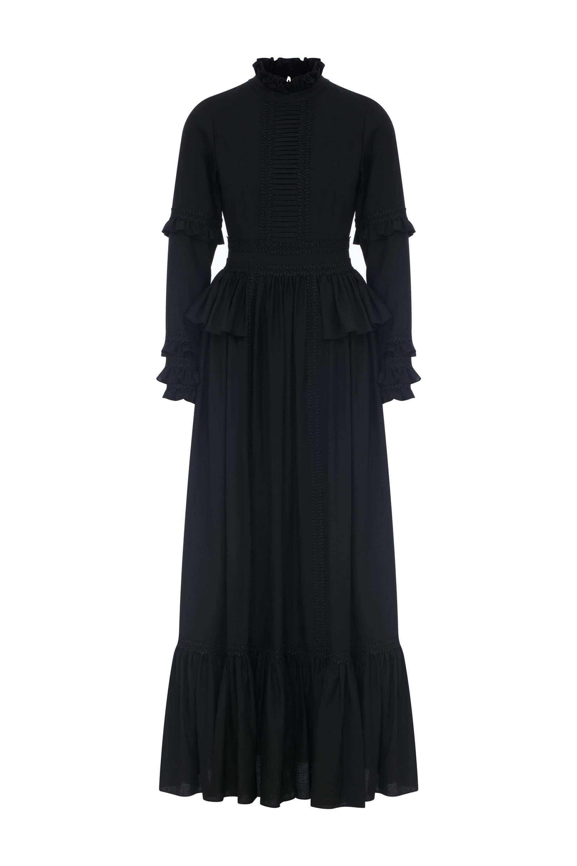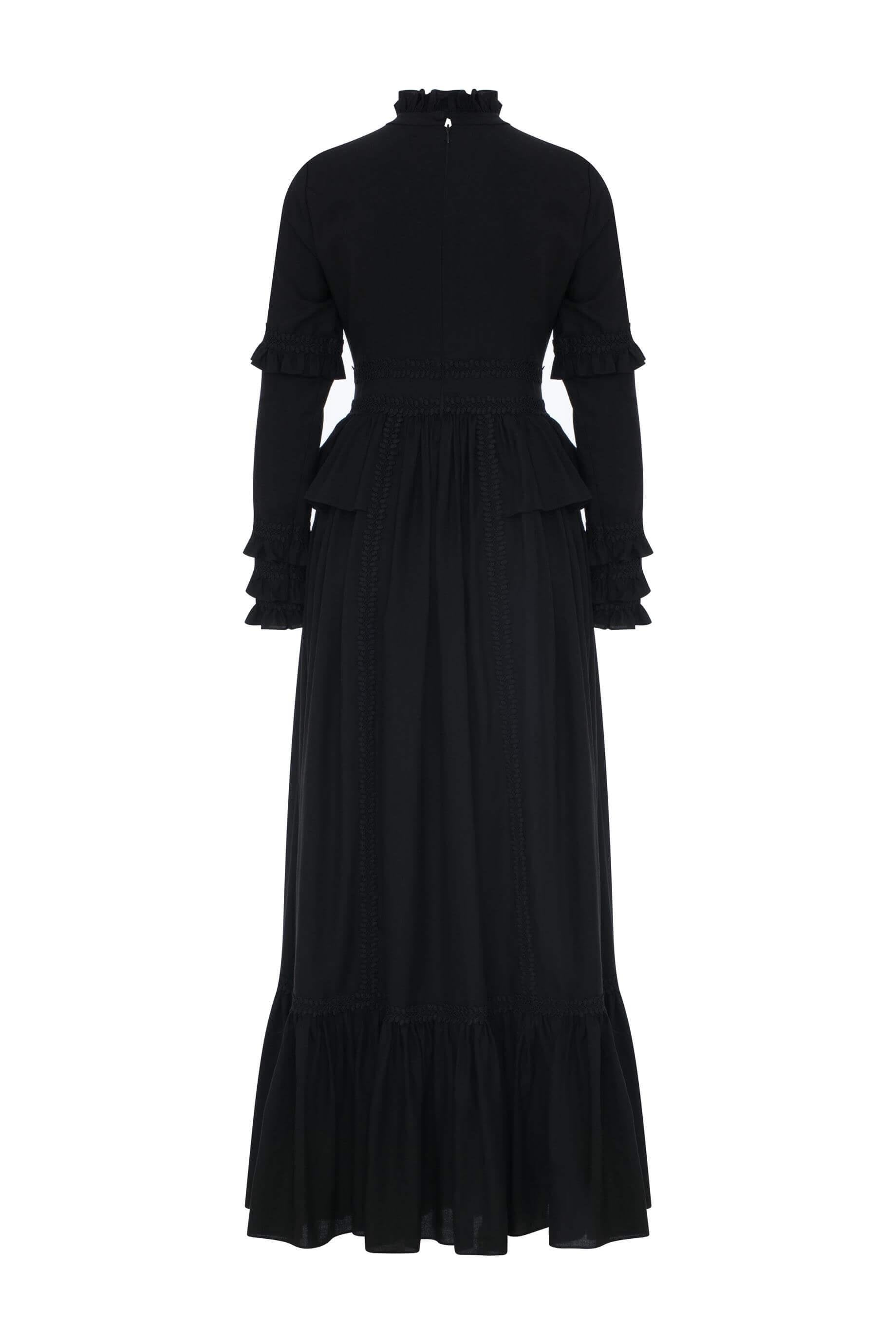 - Ürün Açıklaması: Kumaş Bilgisi : %100 Keten Siyah Fırfır ve dantel detaylarıyla adeta dönem kıyafetlerini andıran bu elbise sizi romantik bir havaya sokacak.