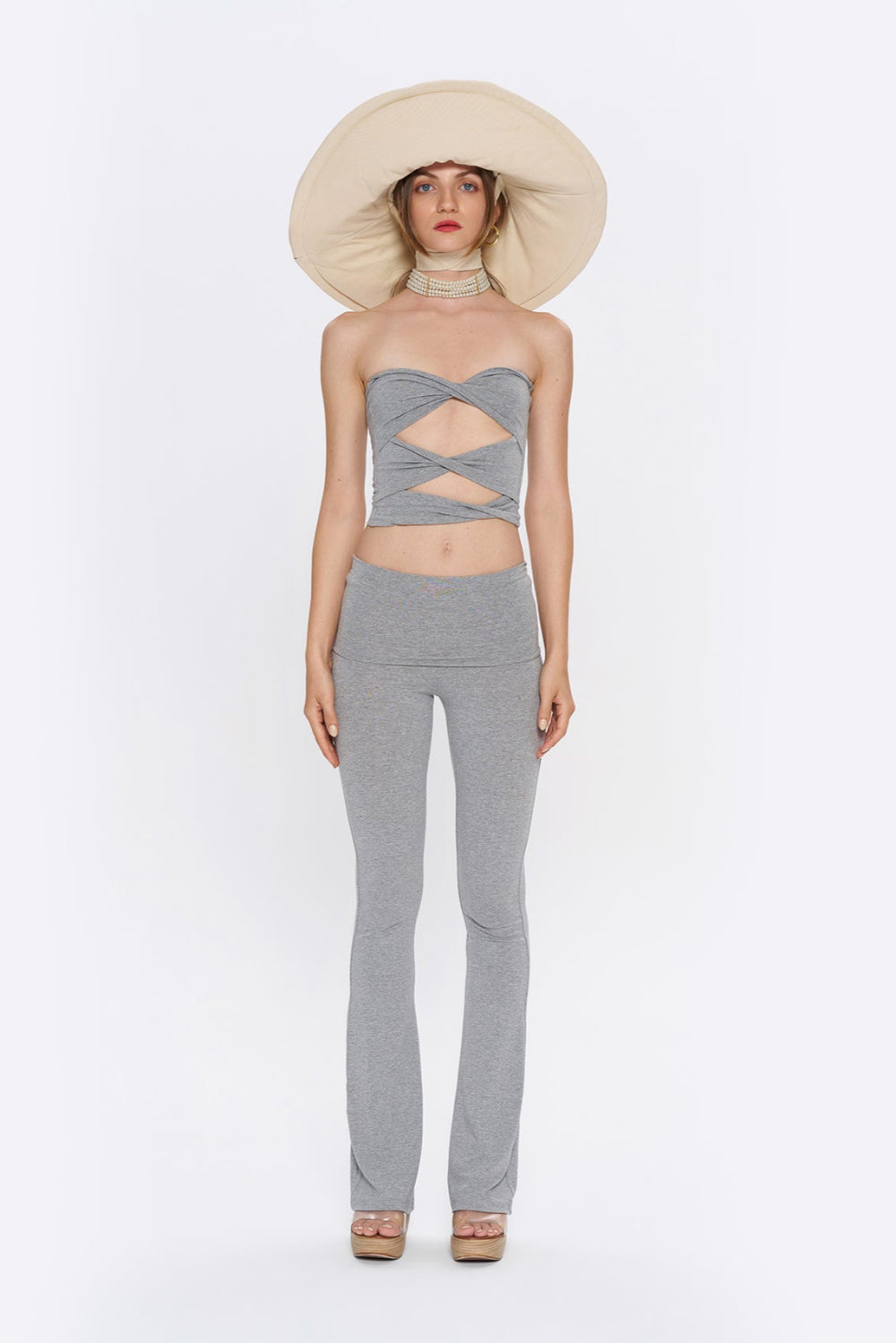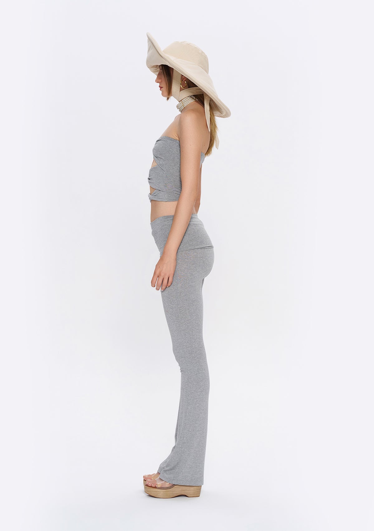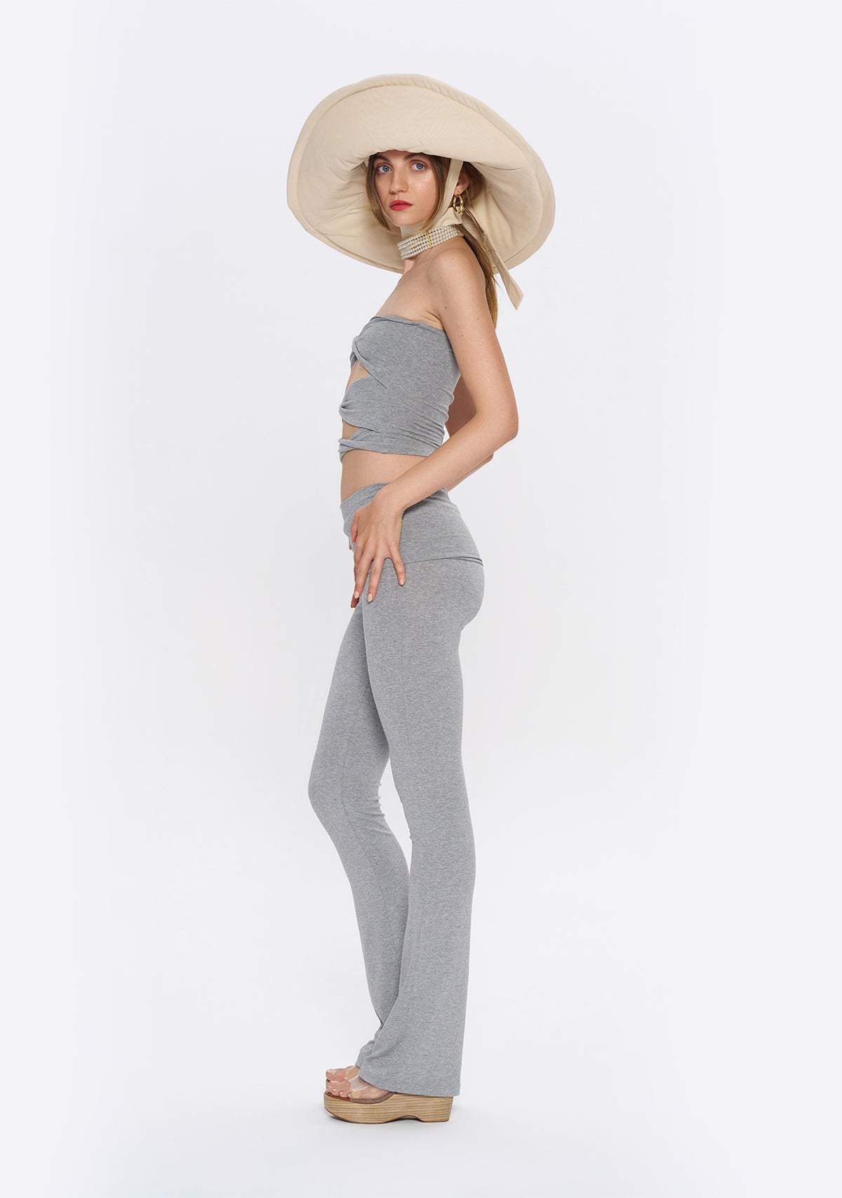 - Yumuşak kumaşı ve katlanabilir beli ile Yüksek Bel İspanyol Paça Gri Tayt , hem düşük bel hem de yüksek bel olarak kullanma esnekliği sunar.