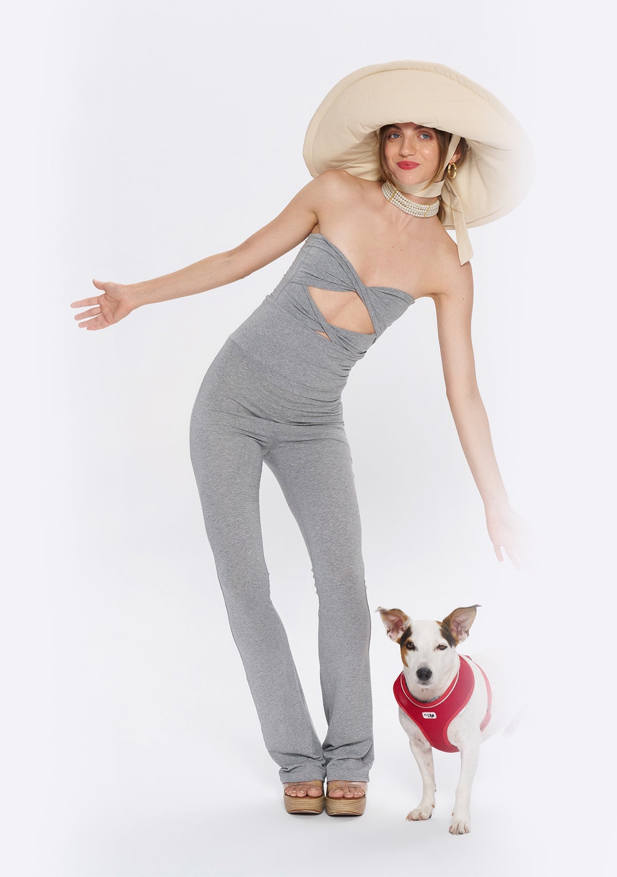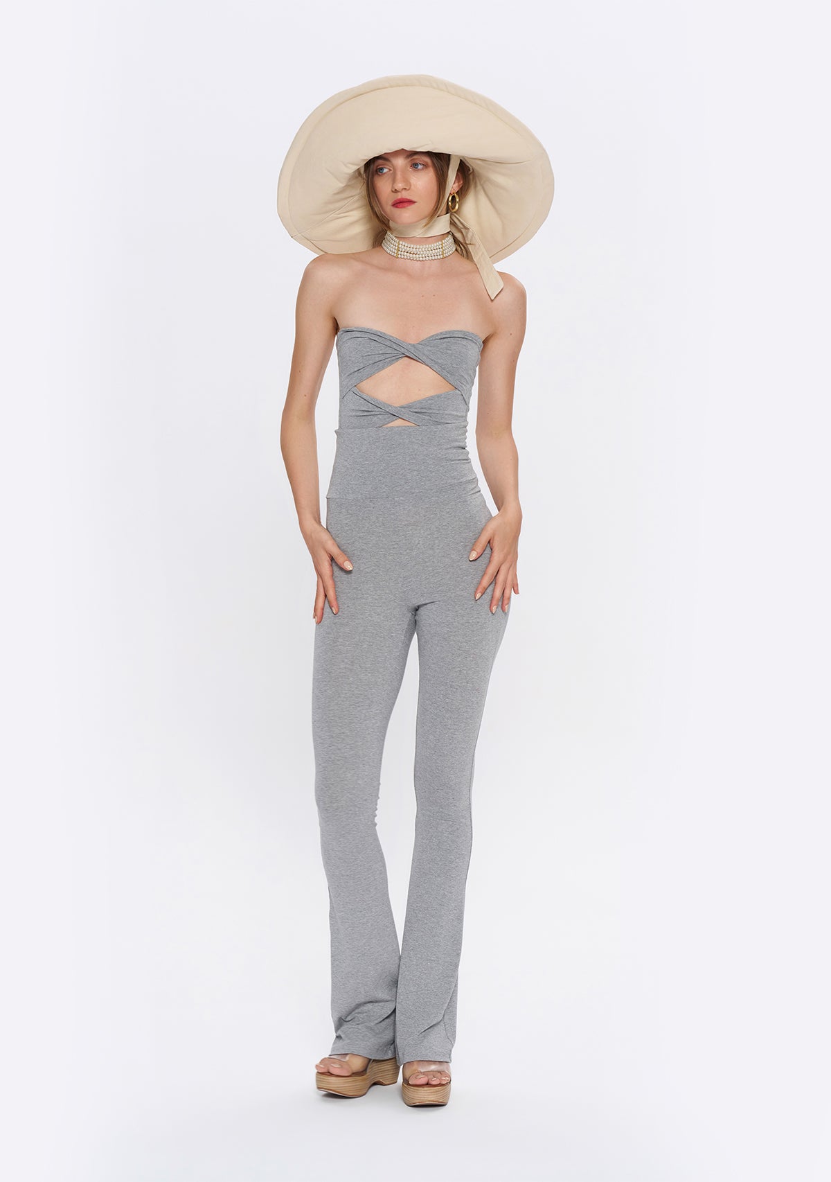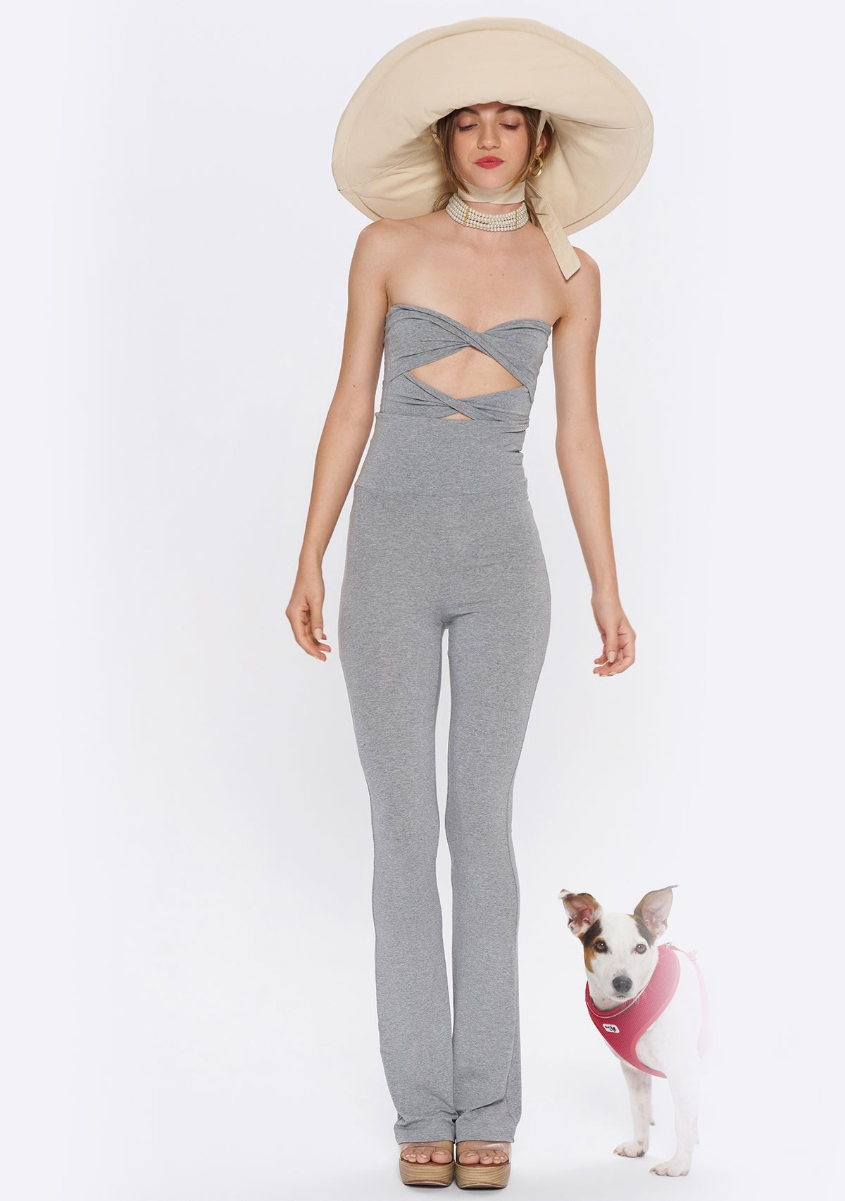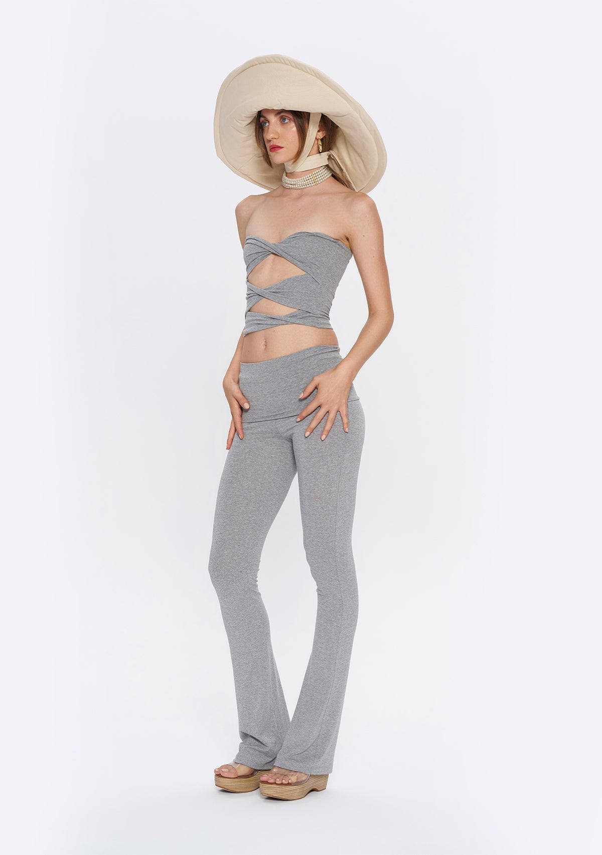 Yüksek Bel İSpanyol Paça Gri Tayt