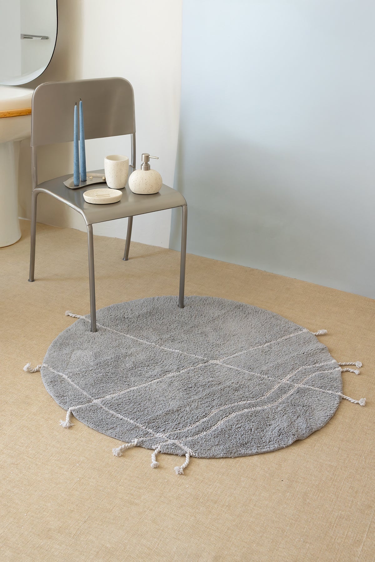 Travertine Yuvarlak Banyo Paspası %100 Pamuk 100x100 Gri
