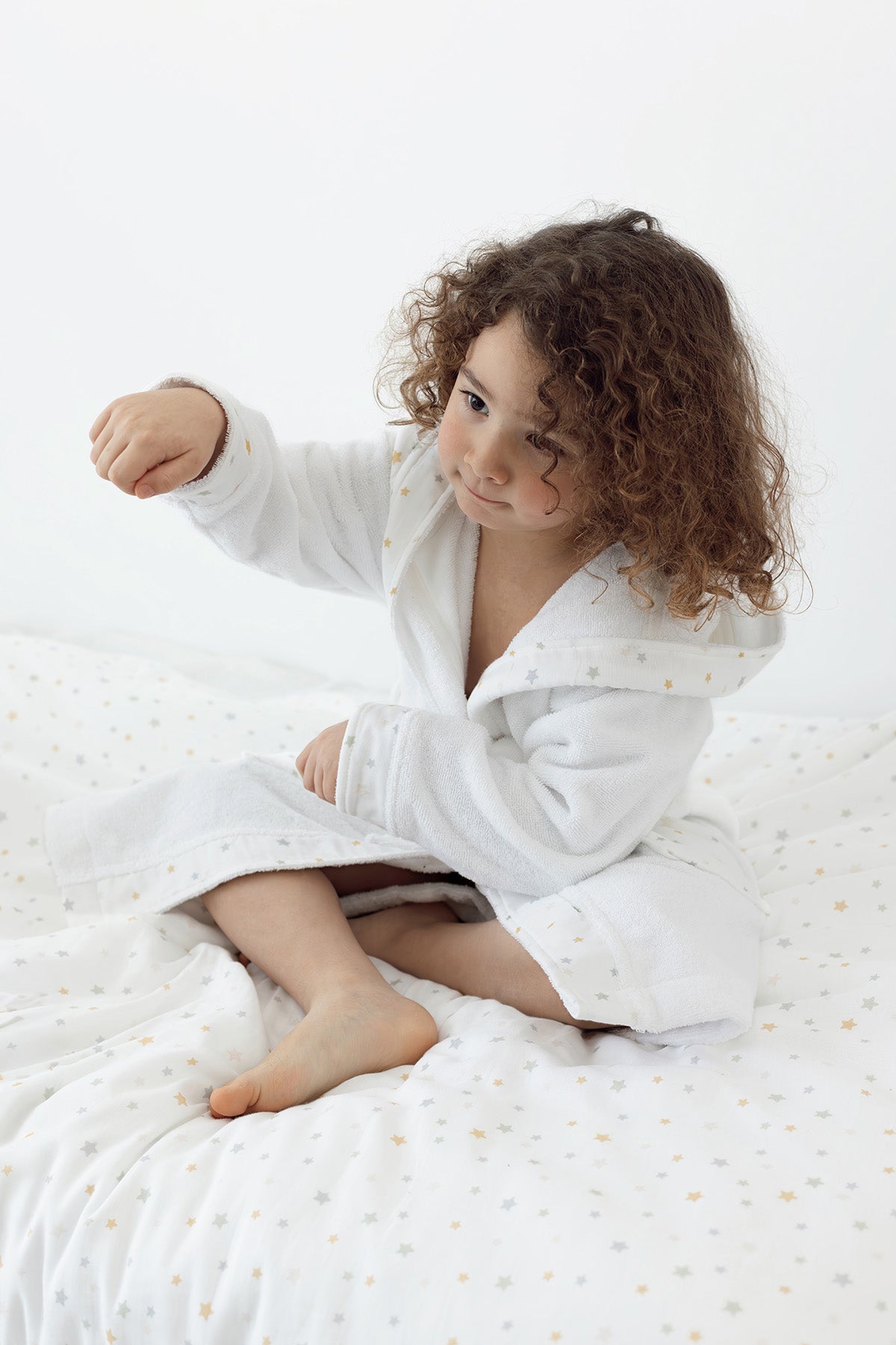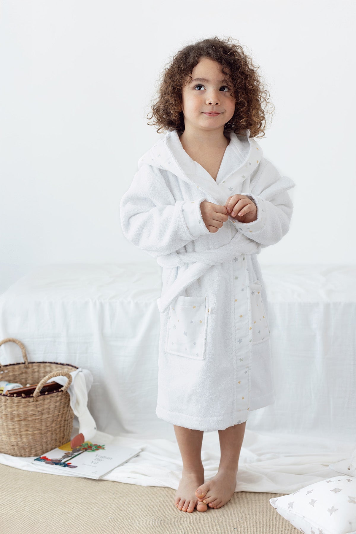 Dreamer Organik Pamuk Müslin Detaylı Çocuk Bornoz Beyaz