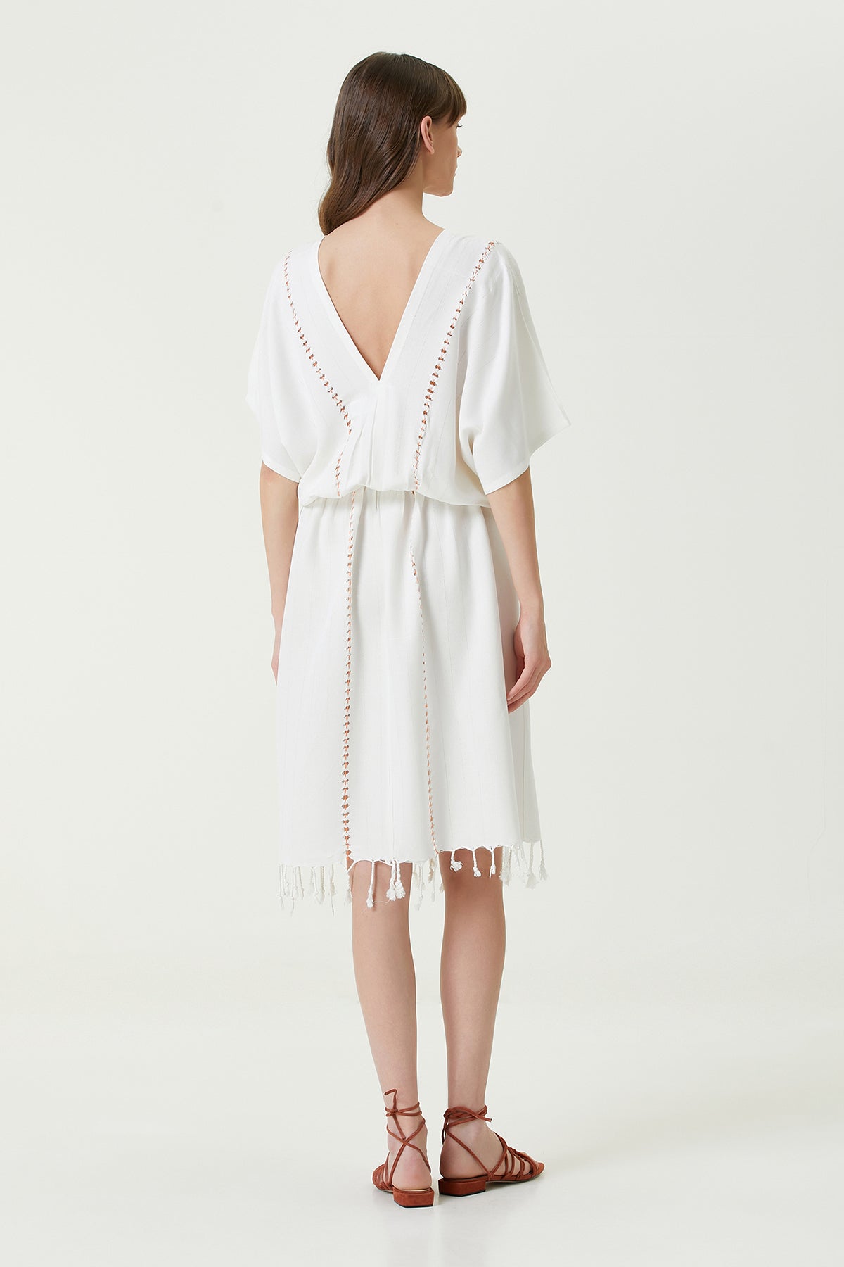 Serene Uzun Plaj Elbisesi Turuncu Örgü Ajur